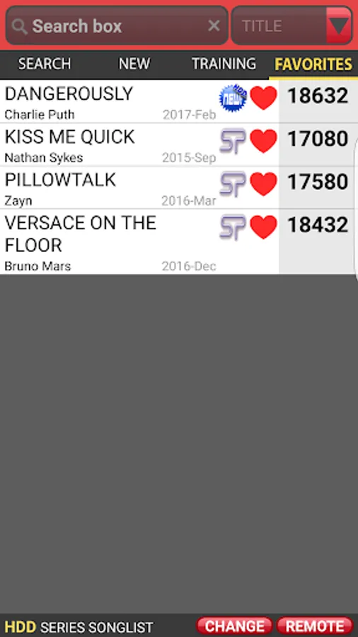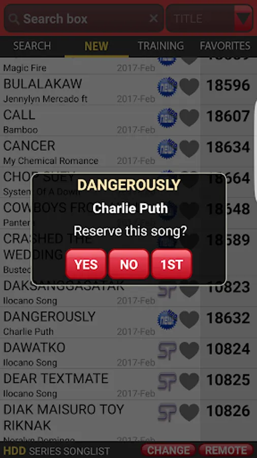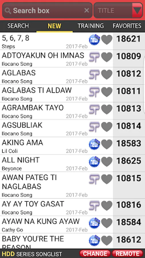 - Browse newly added songs (Red New Icons denotes DVD updates, Blue New Icons denotes monthly additional songs for HDD type players)