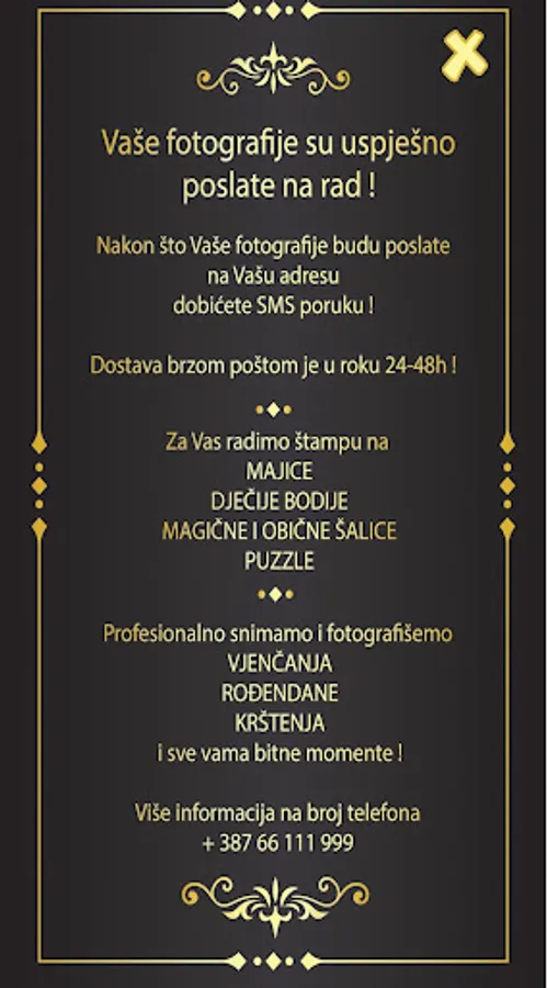 Dostavu na kućnu adresu očekujte u roku 24-48h ! Fotografije se plaćacju pri preuzimanju.