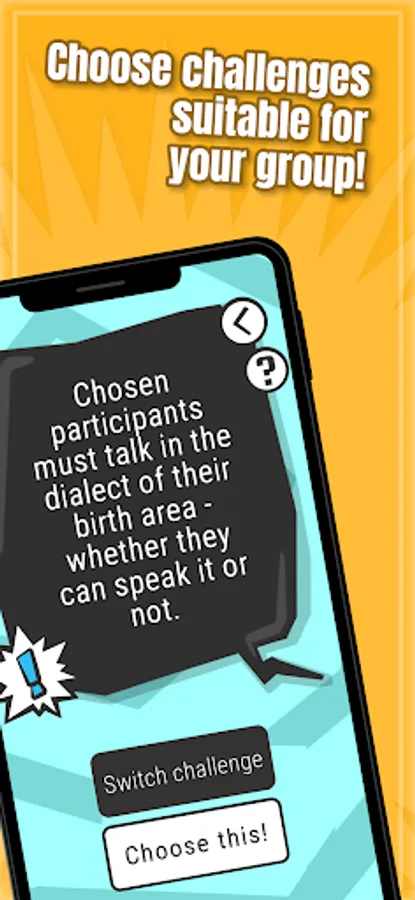 Challenge Royale is a fun conversation and party game for adults. It helps people get to know each other through various questions and dares. The game can be played by 2-12 people and is very suitable for different situations. Find out more about your date and discuss around interesting topics. Get to know your friends better. Spend a hot summer night at a wild party with Challenge Royale. Challenge Royale offers guaranteed entertainment and excitement for all kinds of situations.