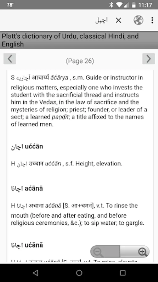 The Platts Urdu, Hindi, and English dictionary app is a product of the Digital South Asia Library program (https://dsal.uchicago.edu) at the University of Chicago. The app offers a searchable version of John T. Platts's "A dictionary of Urdu, classical Hindi, and English," London: W. H. Allen & Co., 1884.
