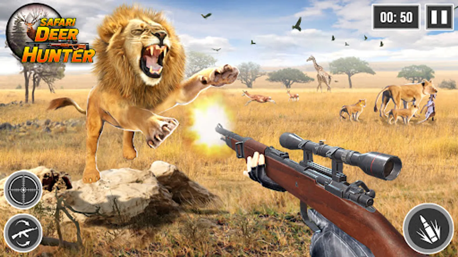 Thrilling deer hunting game, where you'll encounter various wildlife species and embark on exciting African safari trips. Take aim, shoot accurately, and enjoy the thrill of the hunt. Survive the African jungle as an animal hunter, hunting down wild animals in this thrilling 3D offline shooter game