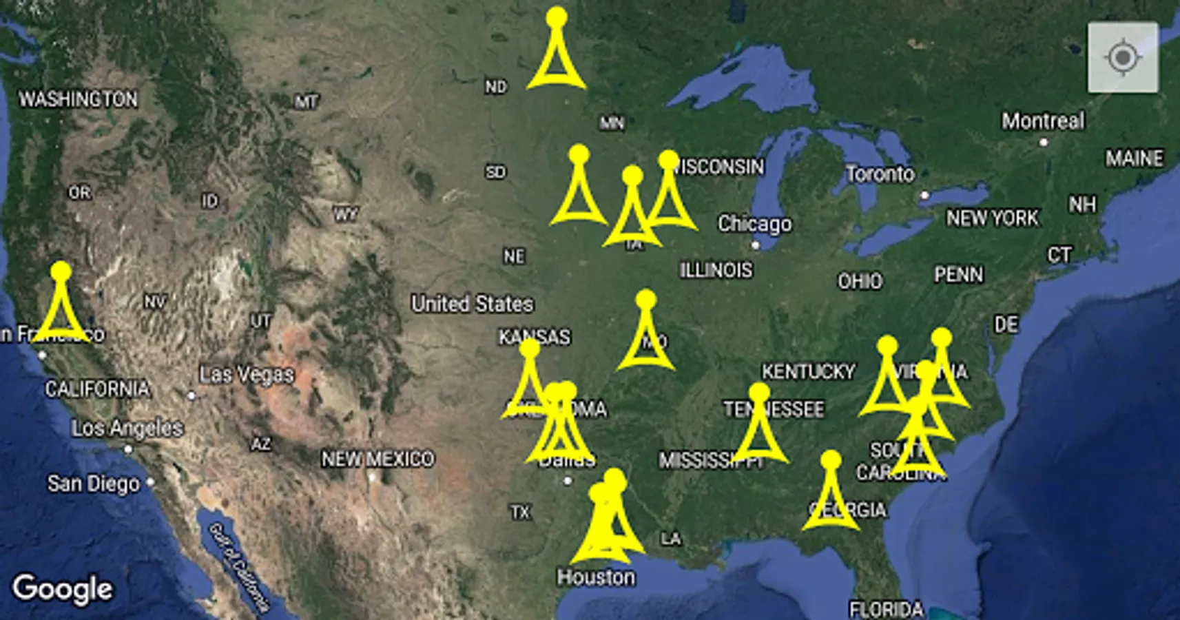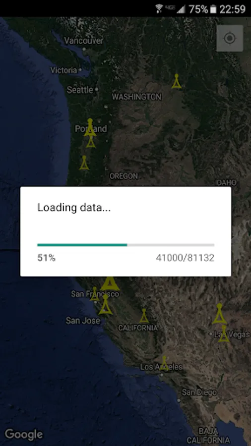 Displays the 20 tallest antennas in the current map view. Zoom in to see smaller antennas. Tap to get height information. Tap again to visit the antenna registration page.