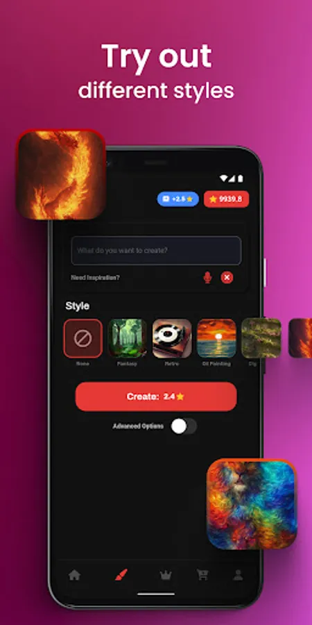 But that's not all! Idealize: AI Art Generator also offers a wide range of customization options, allowing you to fine-tune your creations to your exact specifications. Choose from a variety of art styles, including retro, fantasy, comic, anime, minimalist, vintage, and more. And with the ability to save and share your creations directly from the app, it's easier than ever to show off your artistic talent to the world.