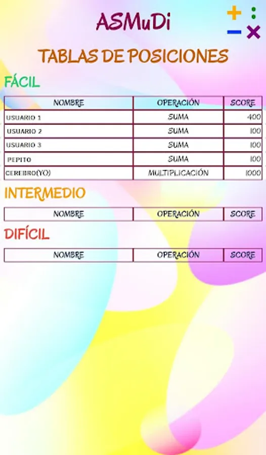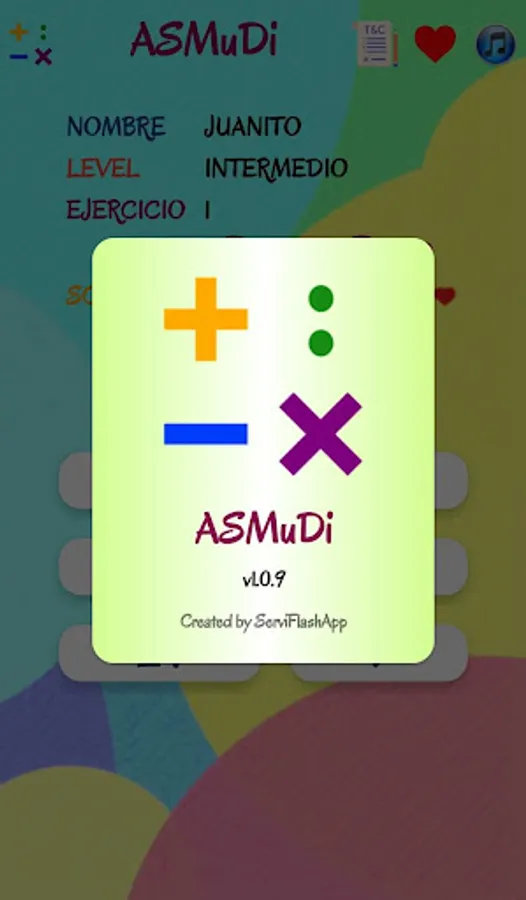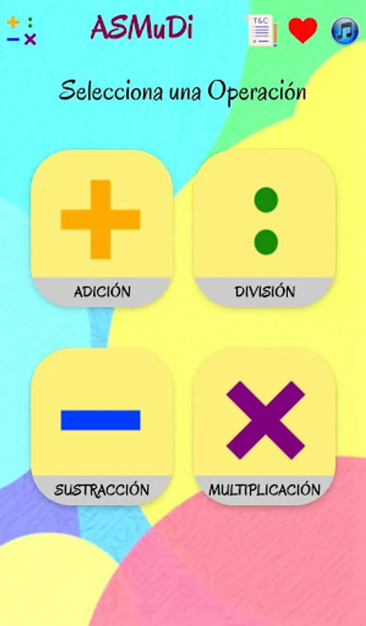 ASMuDi is an interactive application for children and adults, which encourages the practice of the four basic operations: