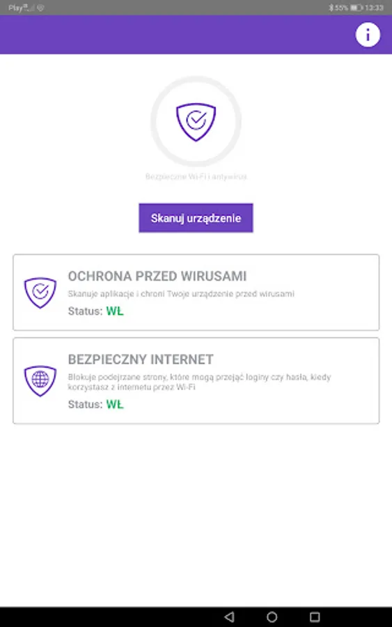 Safe Wi-Fi and Antivirus is an application available to Users who have activated the Play Security Package. Thanks to this application, you also gain an extension of protection when you use the Internet via Wi-Fi. You can safely log into the Wi-Fi network without worrying about data loss, hacking your account or viruses.