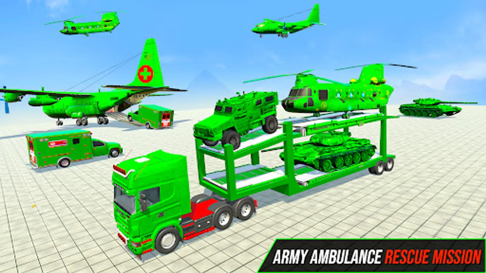 As an army ambulance driver, you will drive your transporter truck to accident points for rescuing injured soldiers using your ambulance transport truck, army ambulance and military helicopter to drive injured soldiers to the nearest hospital in this helicopter game.