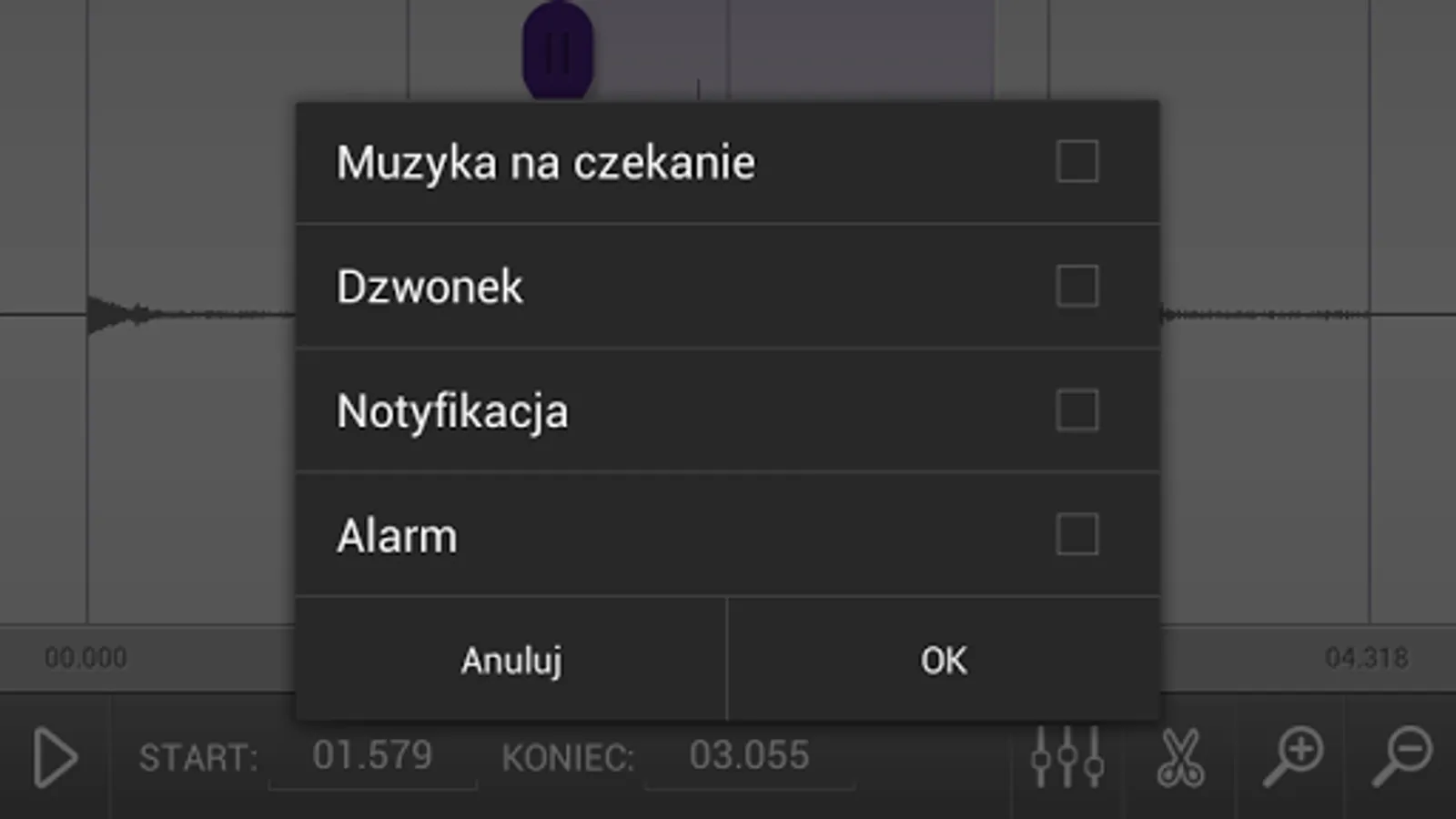 Selected mp3 can be cut and set to music Waiting, bell or alarm.
