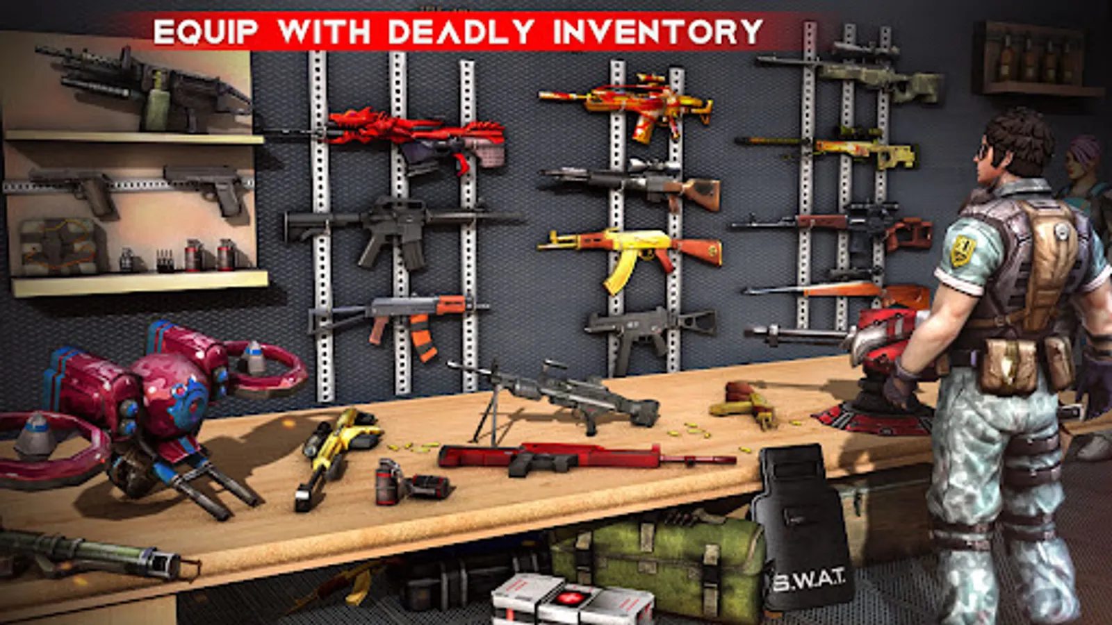 The war front awaits you! Enjoy various military games shooter action ending at the boss mission of alien shooter game, tactical combat modes, amazing shooter game graphics, and easy to use controls. Enjoy the coolest shooting game with PC quality graphics. Play the thrilling alien shooter gun games and join action alien shooting boss battles to win and conquer in commando games! The mobile alien shooter game is in the top priorities of everyone's favorite modern commando shooting games!