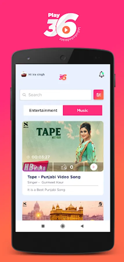 Play36 is the world’s leading music & entertainment video network with two most popular categories video Music and entertainment. It offers short & long duration videos. Users can watch videos in multi-languages like Hindi, English, Bhojpuri, Pahadi, etc. It allows users to share & like the videos. Users can search for a video on Play36 by its title or artist name.