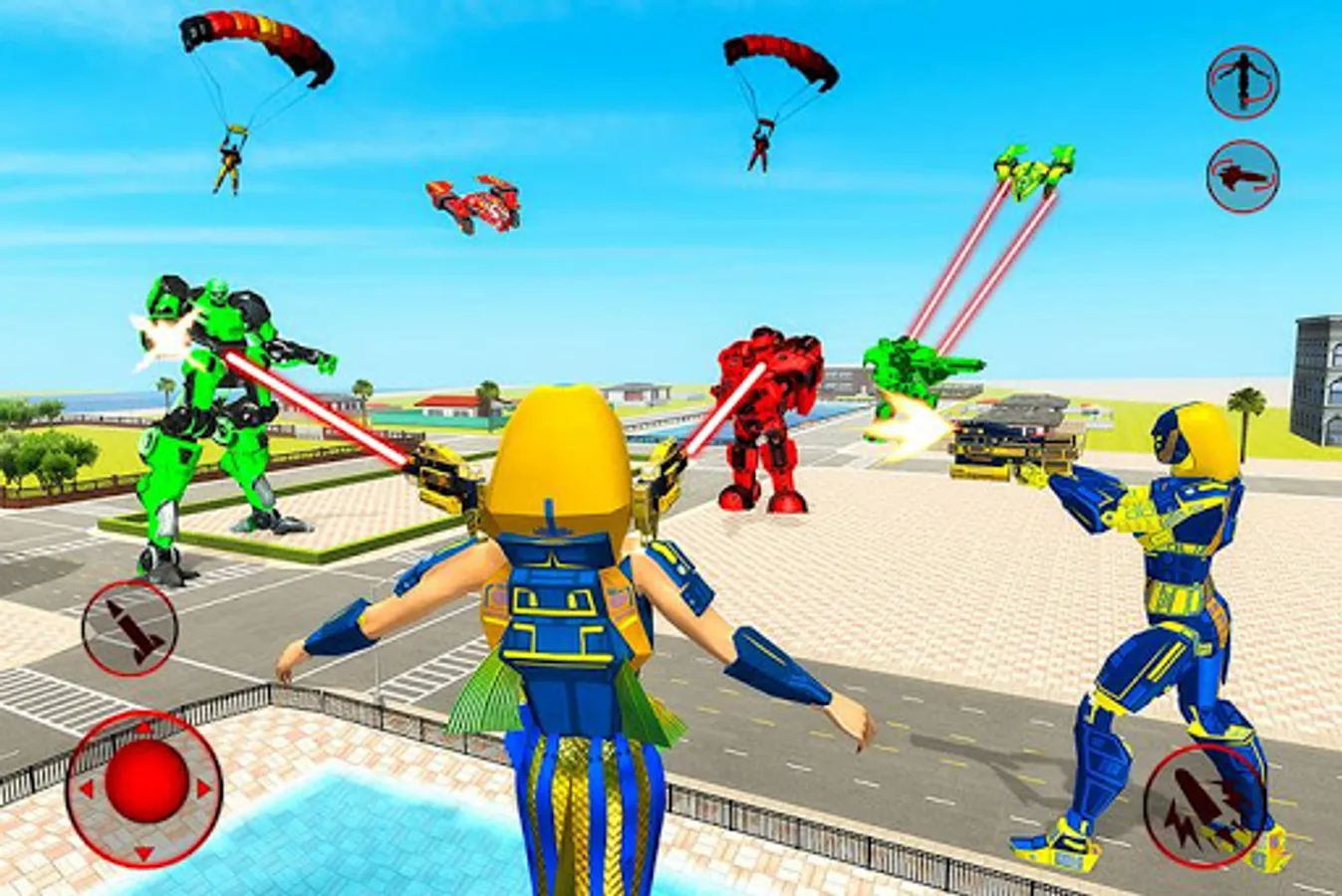 Robot transform car attack aka flying robot battle will give you opportunity to transform into mermaid robot and fight for survival. This flying car robot simulator and real animal robot attack game is a thrilling robot war within the futuristic city where you will attack on evil robots and shoot them bravely as turtle robot car and mermaid robot. Play as powerful gorilla robot car robot bus transform which is newly designed car robot transforming games provide you modern smacks of turtle robot shooting games in which you come across with gorilla robot transform games. Step into the world of car robot transformation games and face challenging missions of futuristic transformation of mermaid robot transformation games with mermaid simulator where modern war features keeps you in future battle of robot action games.