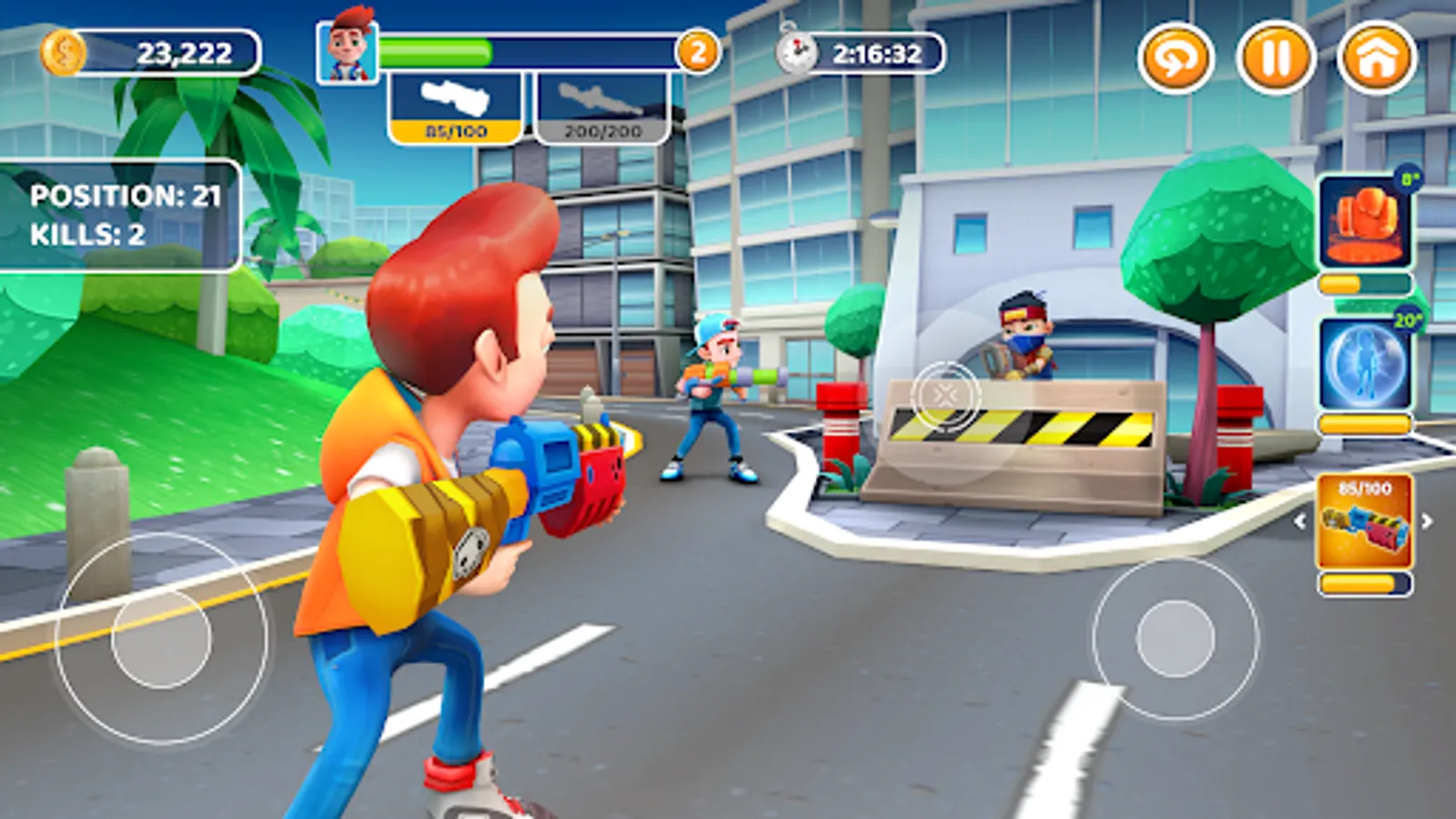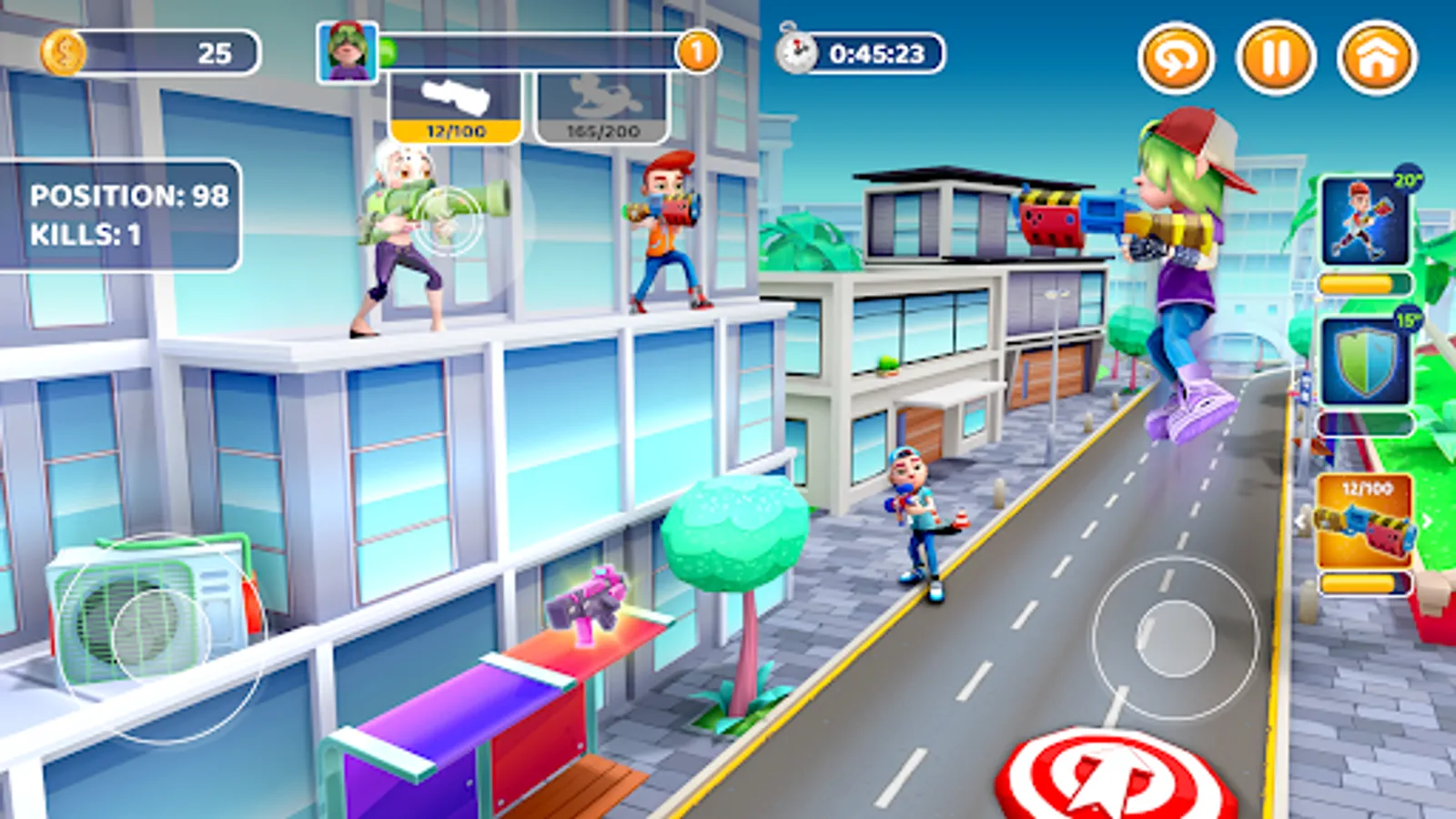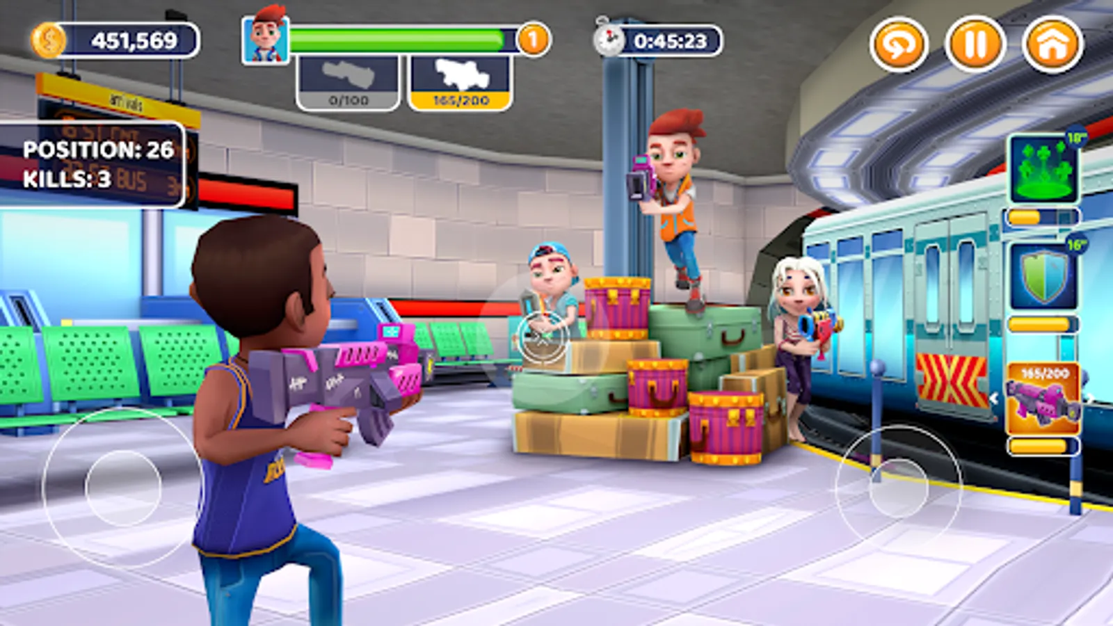 Welcome to Bus Rush Paintball! Come to this amazing shooting game and discover crazy scenarios, awesome weapons and power ups. Play against worthy opponents while gathering different characters and over 60 customization items. All which will help you look cool while prevailing in our Battle Royale against different players from all over the world.