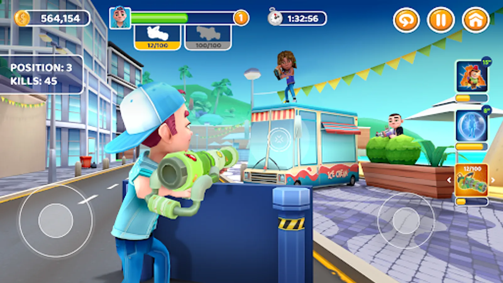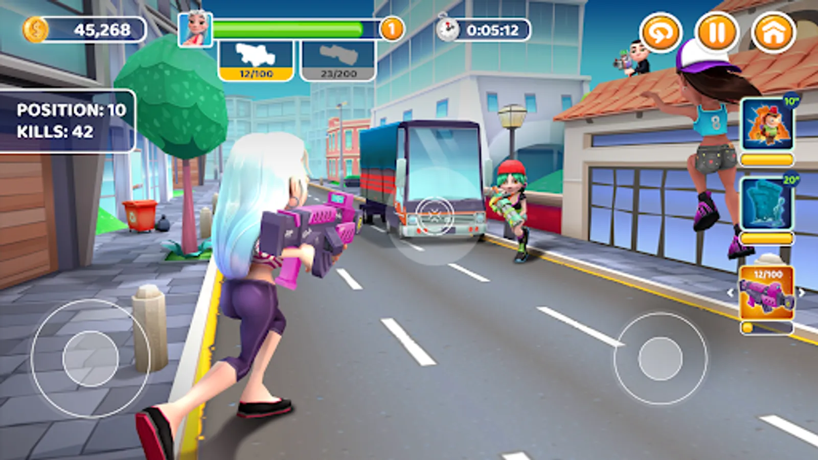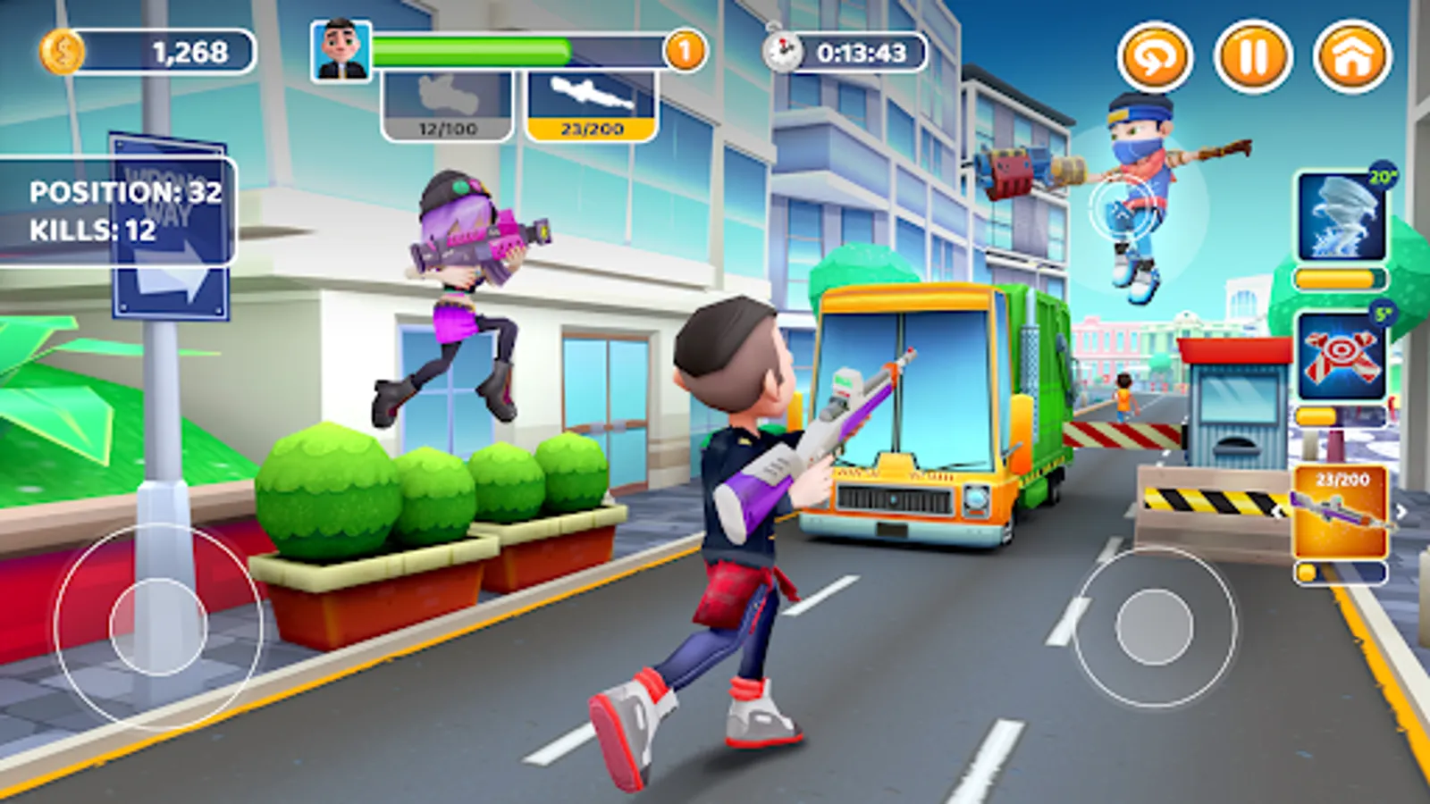 Welcome to Bus Rush Paintball! Come to this amazing shooting game and discover crazy scenarios, awesome weapons and power ups. Play against worthy opponents while gathering different characters and over 60 customization items. All which will help you look cool while prevailing in our Battle Royale against different players from all over the world.