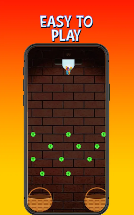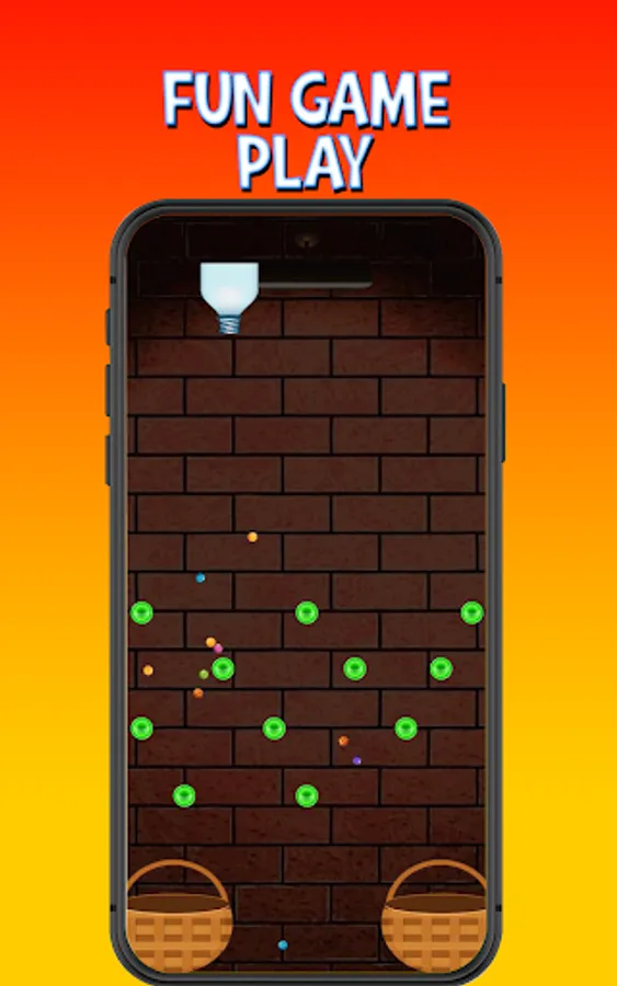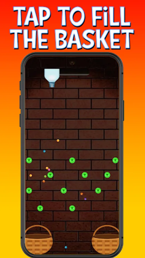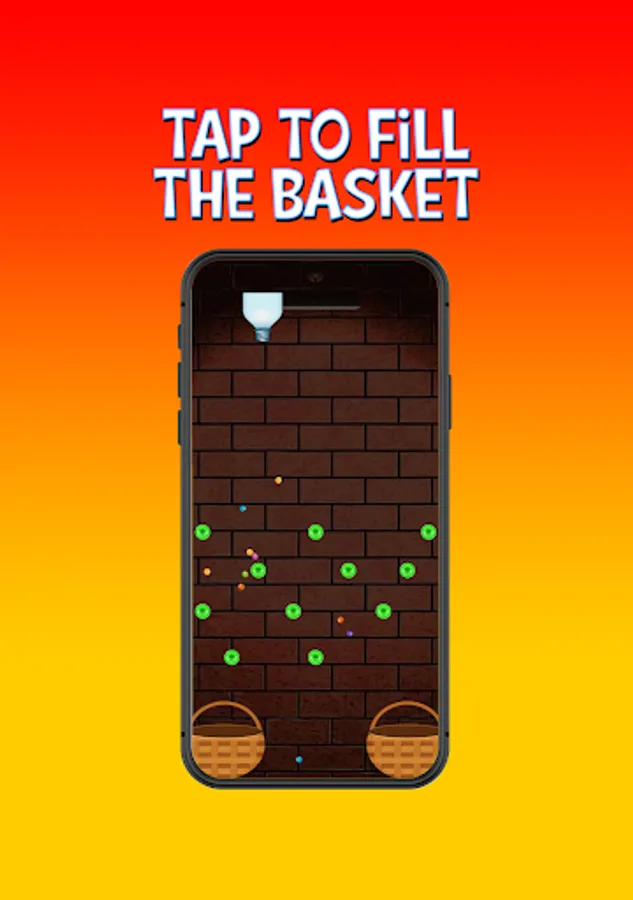 Tap your phone to release the marbles, they bounce here and there and the chance to get to the basket. Every marble that goes to the basket is equivalent to score.