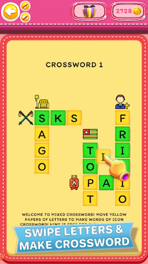 This game challenge you with mixed letters in crosswords that you must make true crosswords by moving letters.