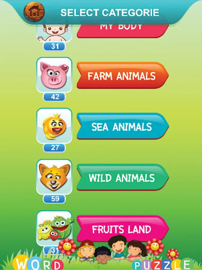 Challenge word puzzle game, easy trivia questions words, sort the letters unscramble words, fun and get knowledge spelling challenge, four letters, 5 letter words, 6 letter words, 7 letter words.
