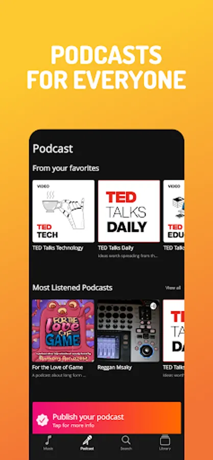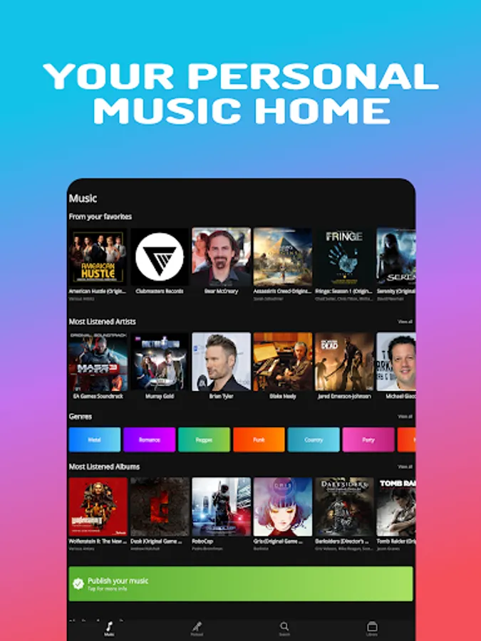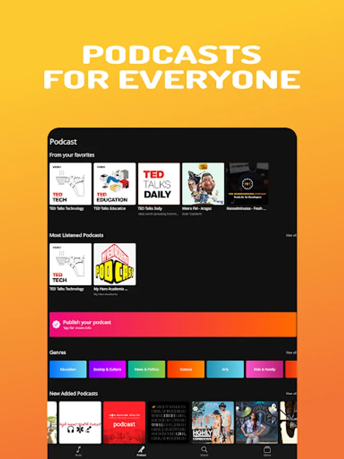 With Playary, you can play thousands of songs and millions of podcasts for free. Stream music or podcast you love, if that's not enough, share your own songs or podcasts with your audience.
