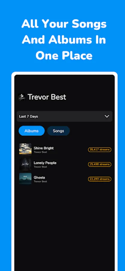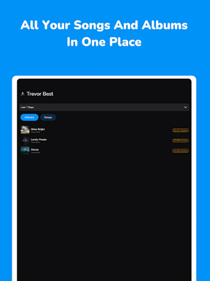 • Track individual album and song statistics in real time.