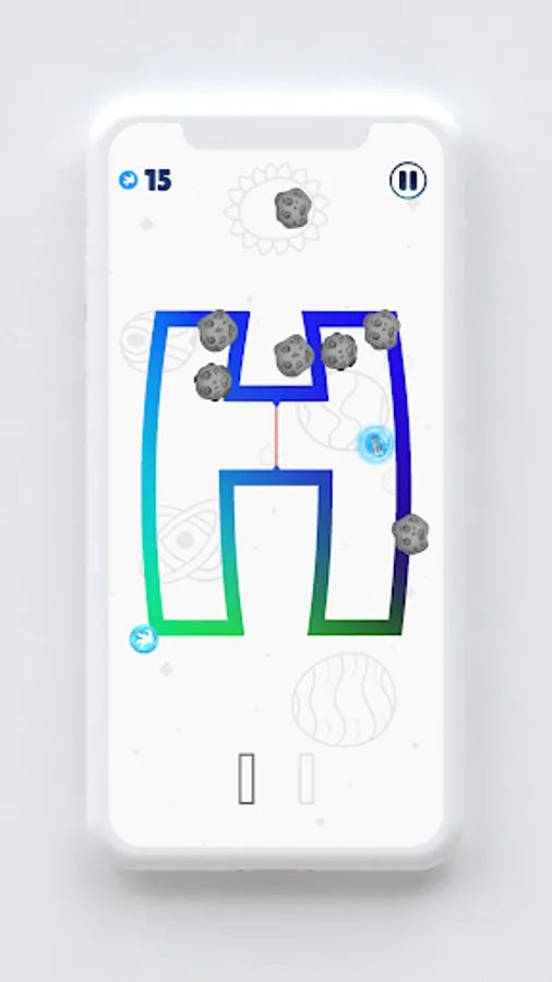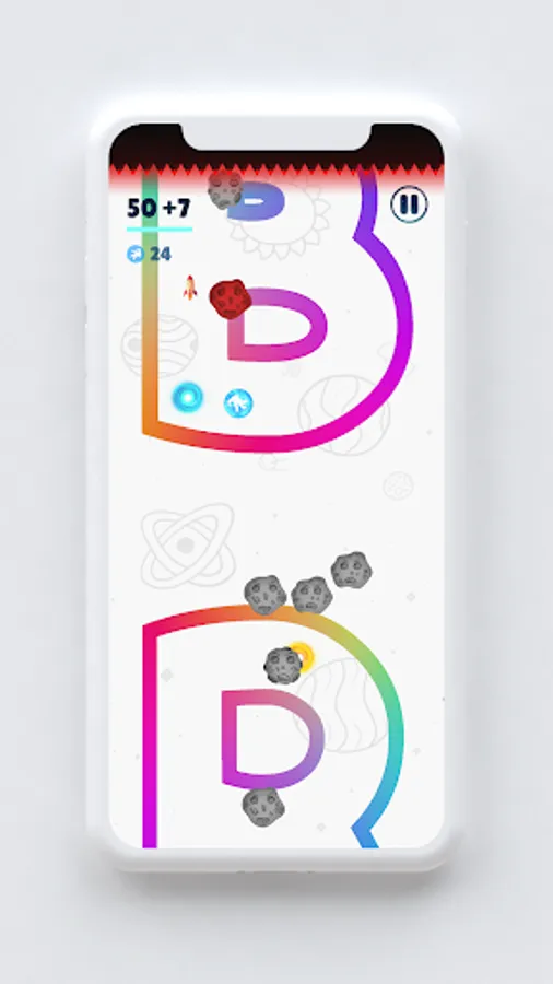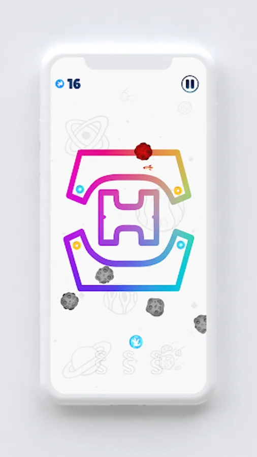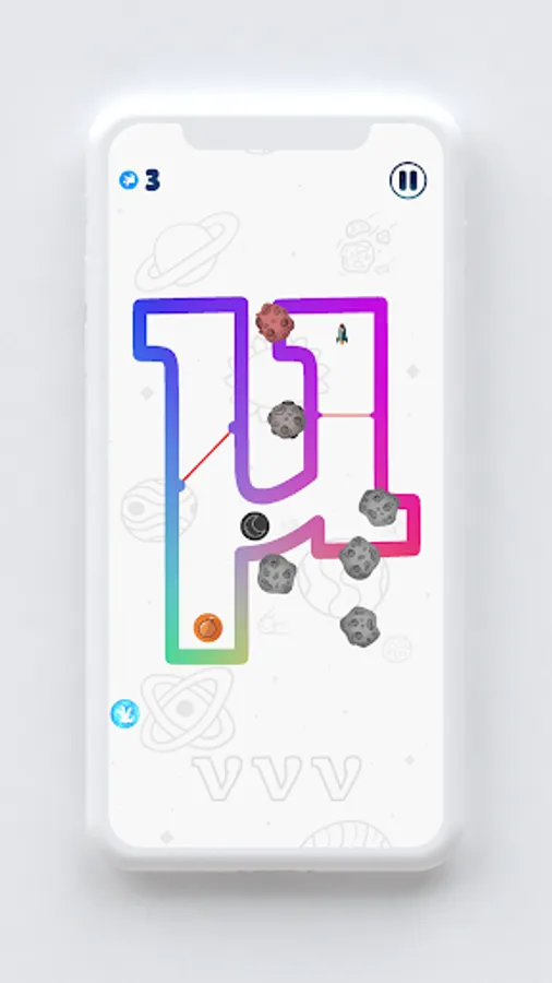 🔠 The rocket is trapped in a science fiction structure which is in shape of: English, Greek or Cyrillic alphabet. In each level you are in different letter with new challenges. Letters are on different planets in different universes, so be aware of weird gravity and physics. In order to complete level you need to save 1, 2 or 3 astronauts depending on level you are playing.