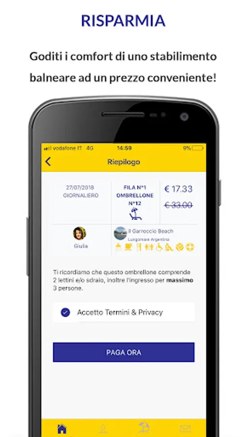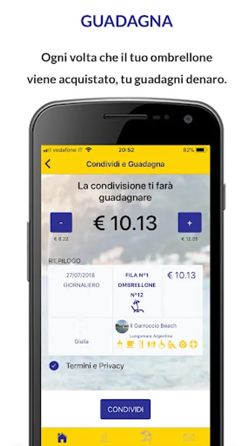 If you have a subscription, and also happen to you not to use your full place on the beach, now you can make it available to other bathers in times of inactivity in exchange for money. Create your ad and within minutes your umbrella will be online waiting to be purchased. Easy as it is brilliant!