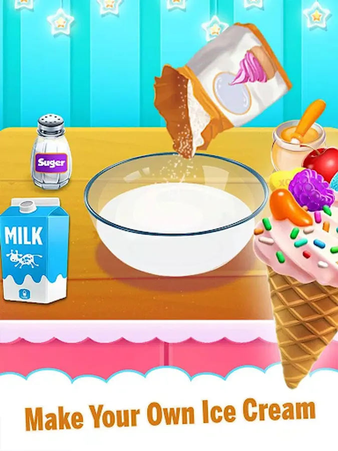 - Different types of ice cream to make like Classic, Sundae, Fish cones, and many more!