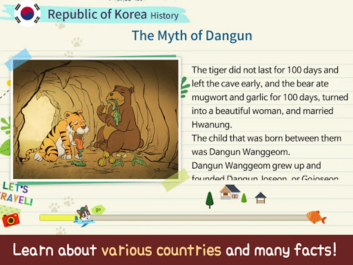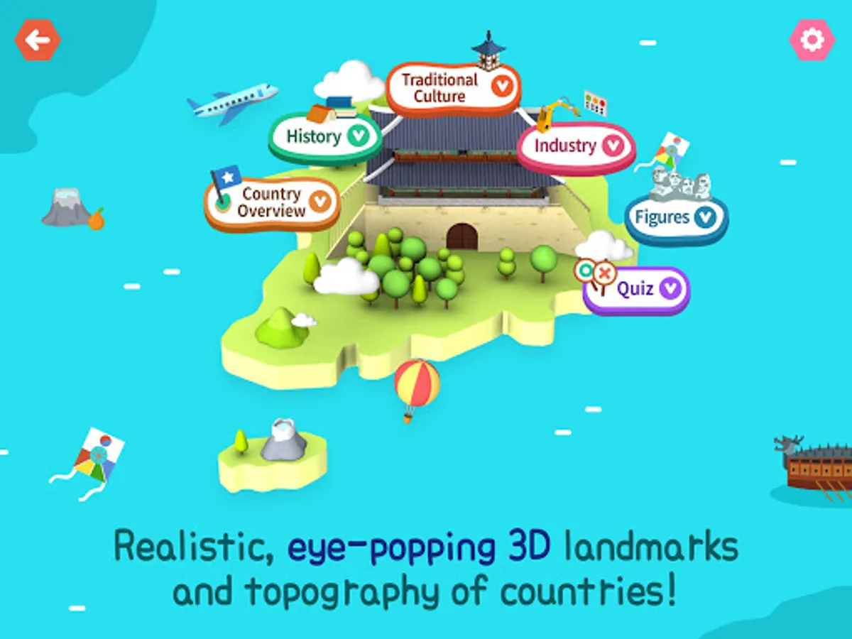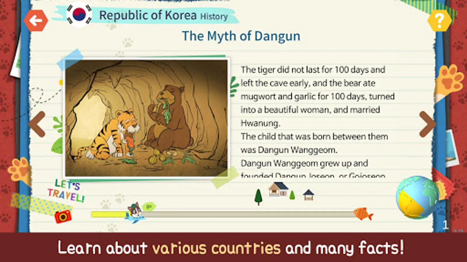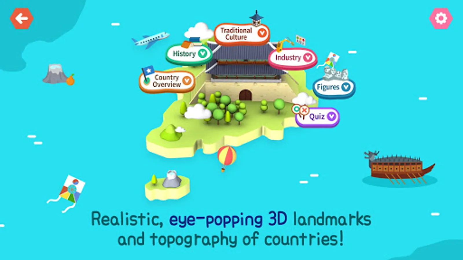 In addition to Curi and Lio's fun moving cartoon, "Curio WorldMap" also features 12 countries of exploration, quizzes, supplementary audio, and many more!