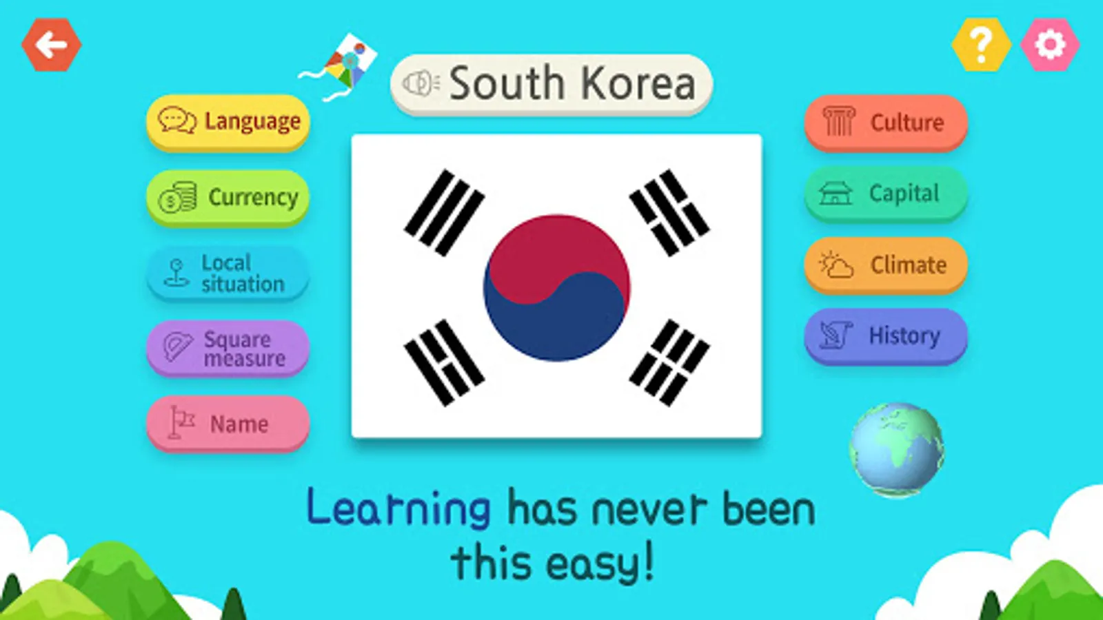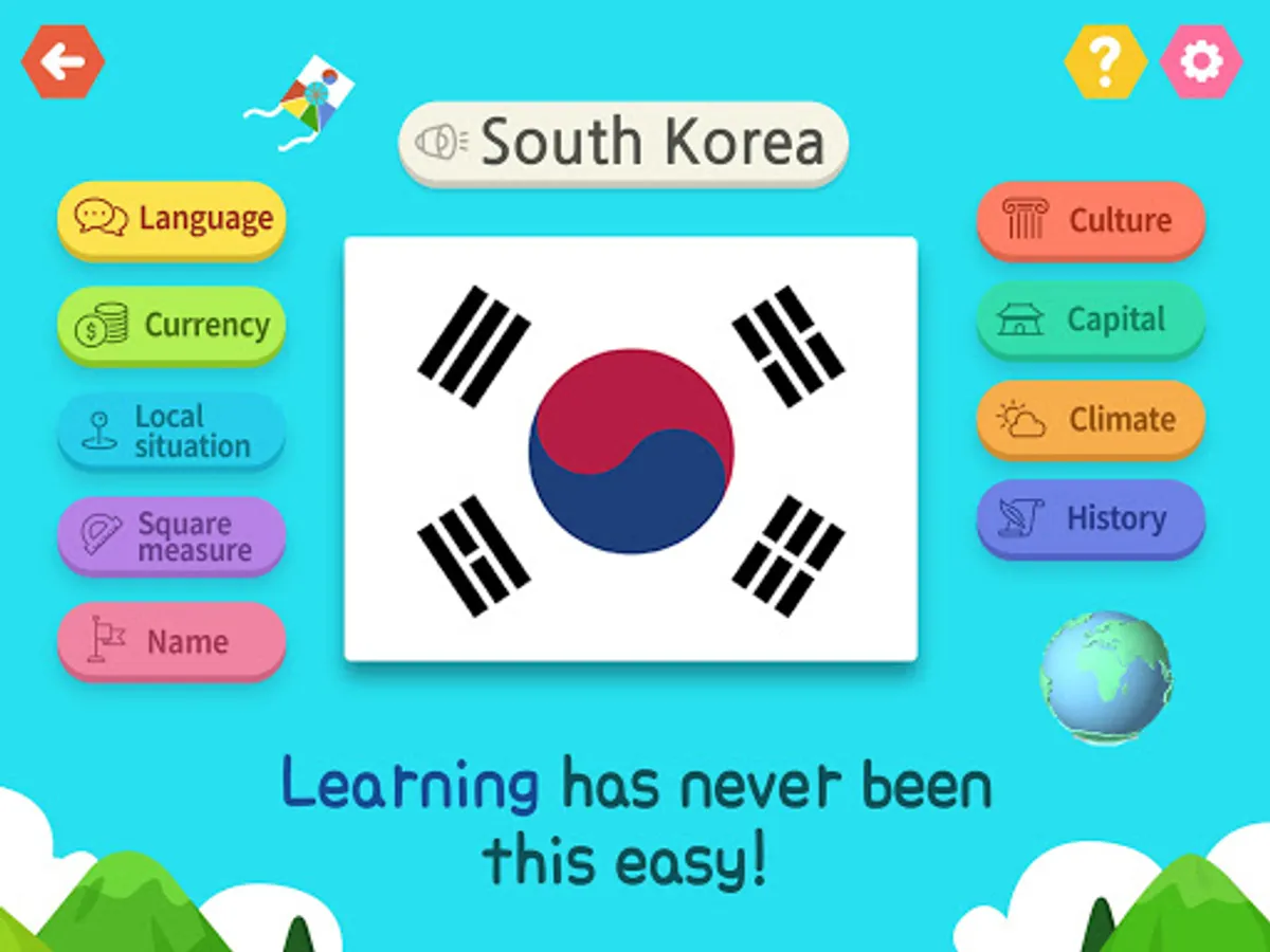 - Easy to learn country facts such as national language, currency, location, area, name, culture, capital, climate, and history.