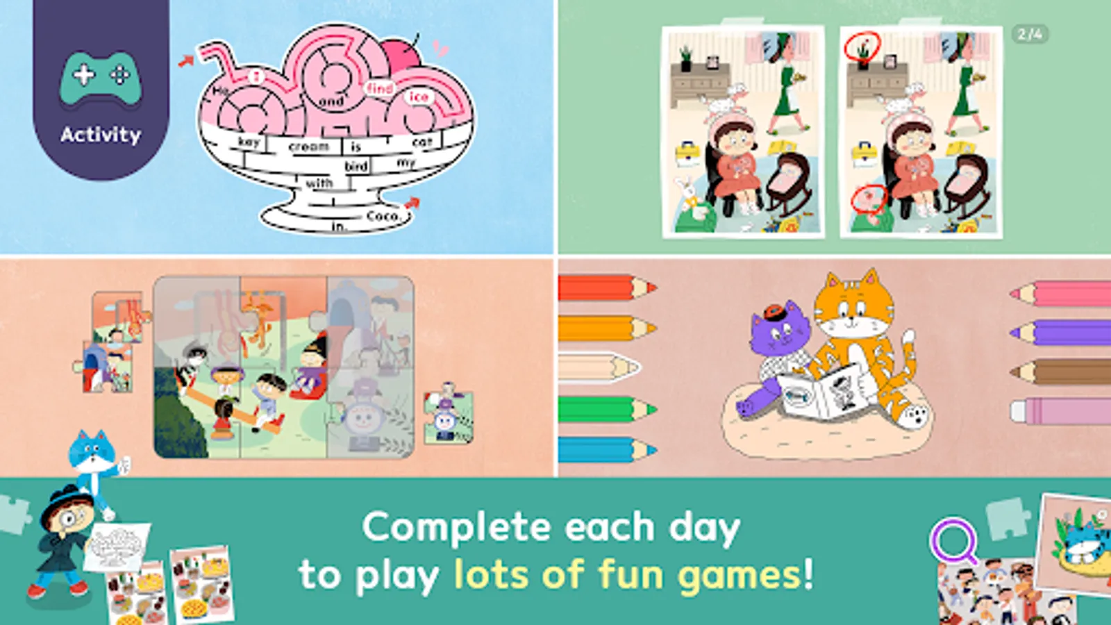 ▶ Replay Mode: Practice through play, various games after completing each daily study.