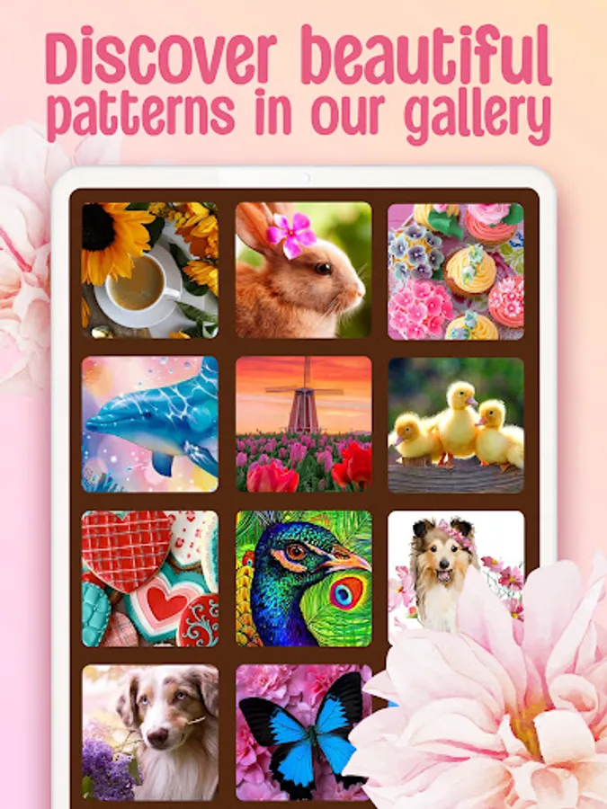 📷Take a photo or import a picture from your gallery, and Cross Stitch Coloring Book will immediately convert it into a cross stitch pattern. Encourage your creativity and feel all the brightness of the colors!