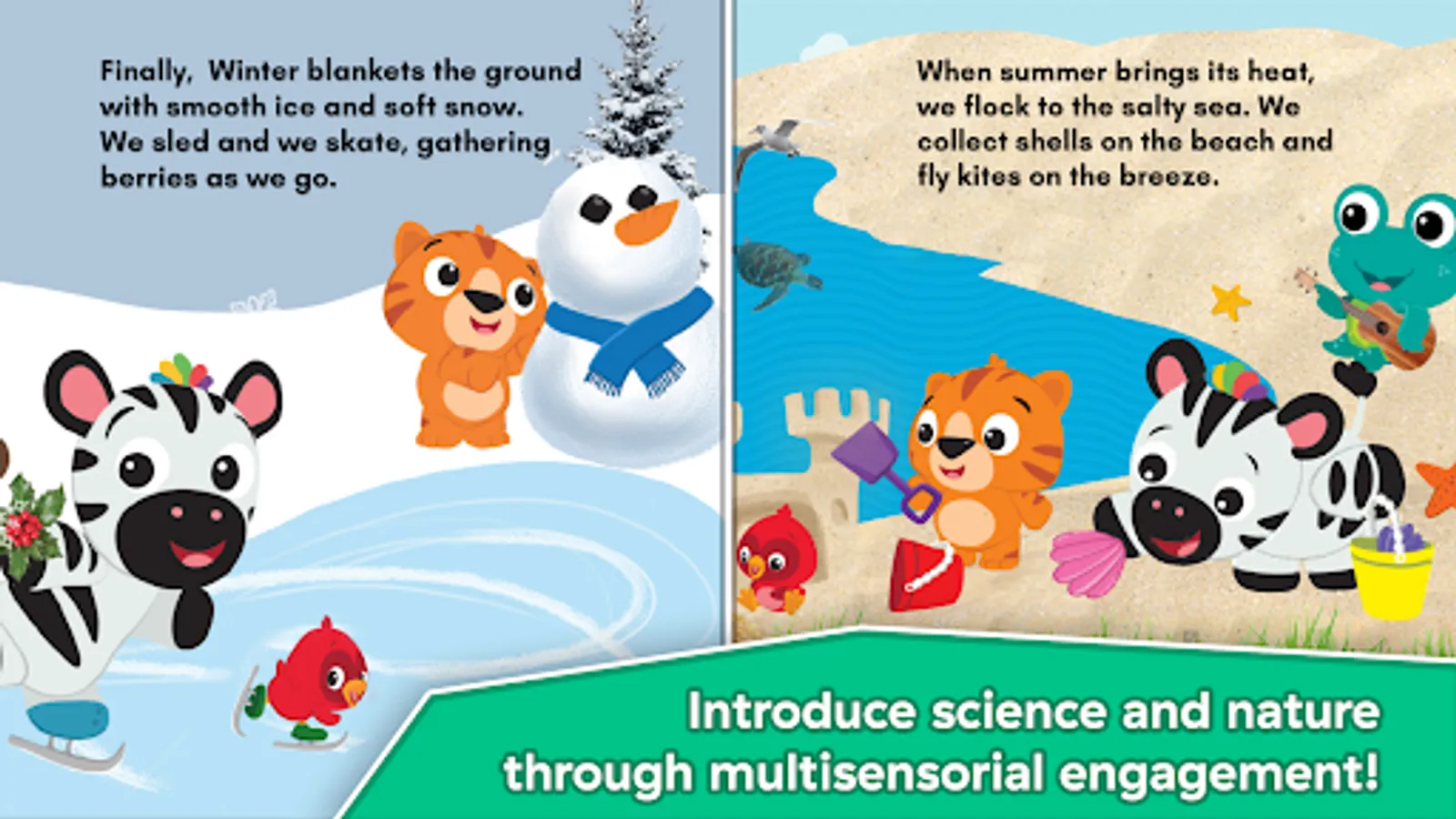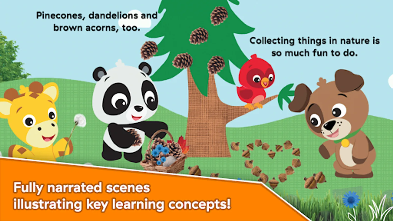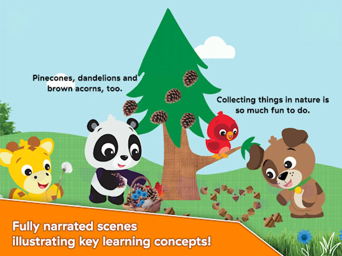 - Fully narrated scenes illustrate key early-learning concepts with adorable, animated animal characters