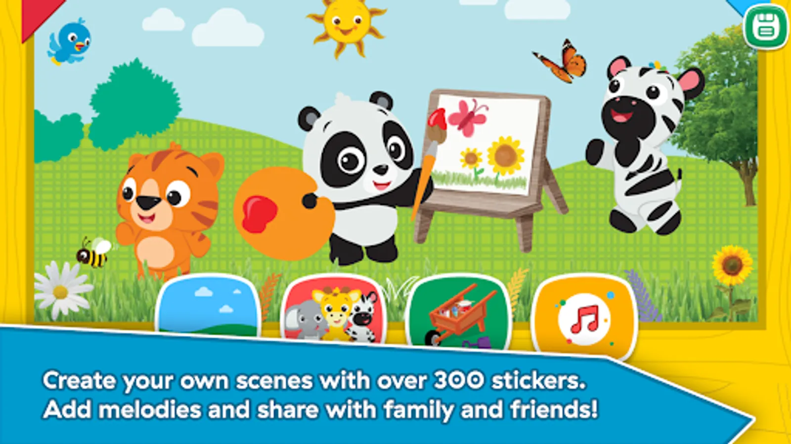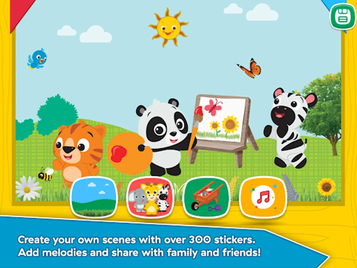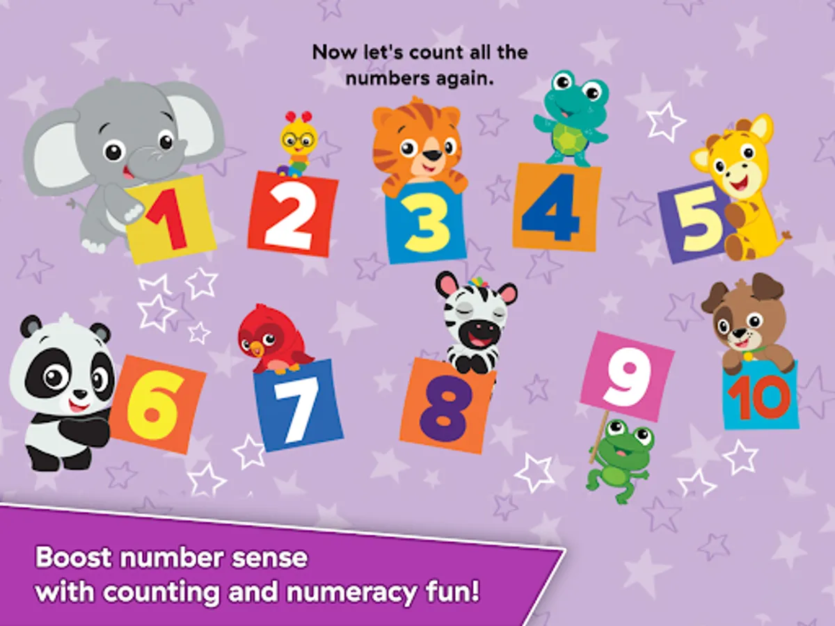 - Fully narrated scenes illustrate key early-learning concepts with adorable, animated animal characters