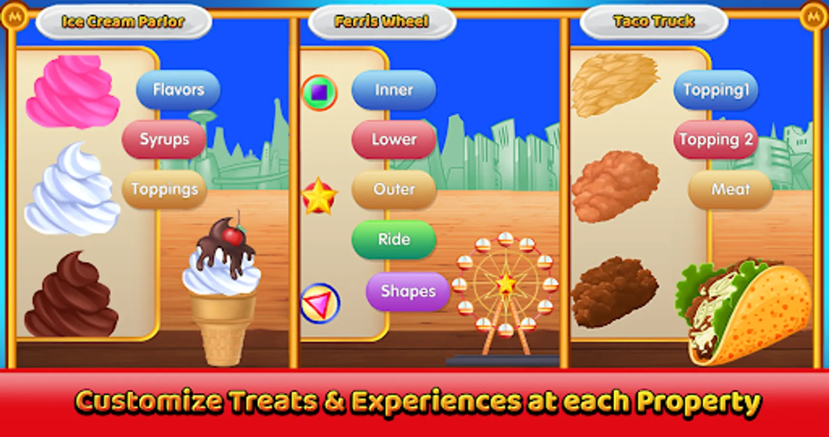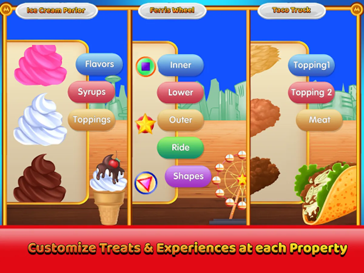 - 16 GORGEOUS ANIMATED LOCATIONS: every kid friendly classic brought to life - Toy Shop, Bakery, Aquarium, Museum, Pet Shop, The Zoo, Boardwalk, Ice Cream Parlor, Roller Coaster, and more!