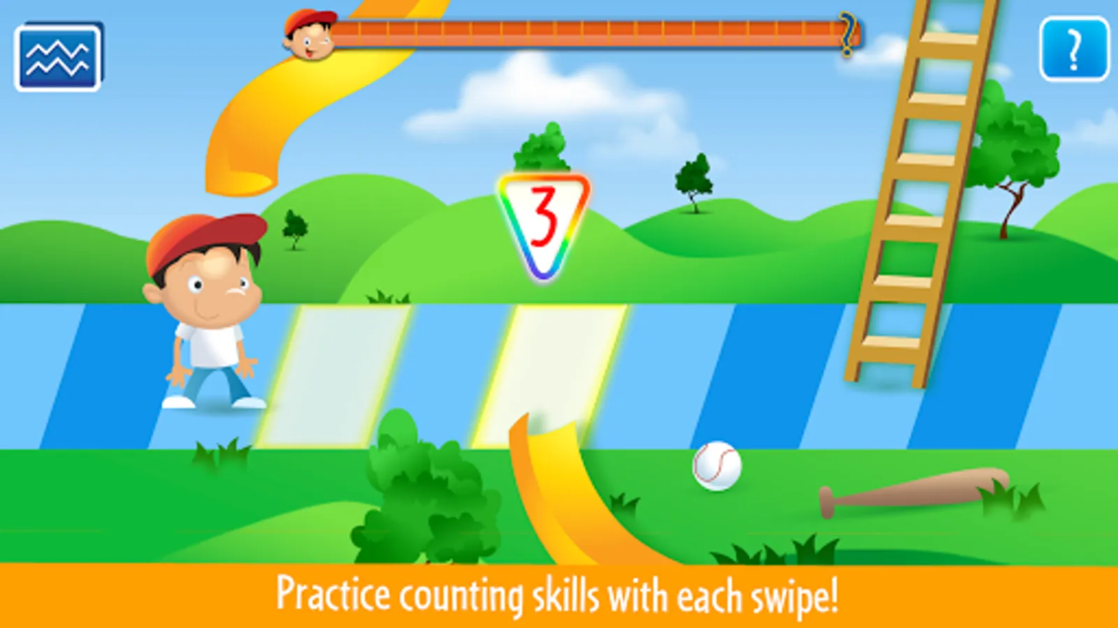 Help guide a group of friends around the CHUTES AND LADDERS neighborhood by progressing through different “Sidewalk Chapters.” Decisions your early and emerging readers make land the characters on the ‘chutes’ and ‘ladders’ of life, good and bad choices that help us get ahead, or not! From the baseball field to the cookie jar, life is filled with choices and temptations, but it’s all about learning that good choices can lead to some pretty sweet rewards! Make a bad choice and there will be consequences. Mr. Chutes, the app’s friendly guide, will show you the way…or will he?