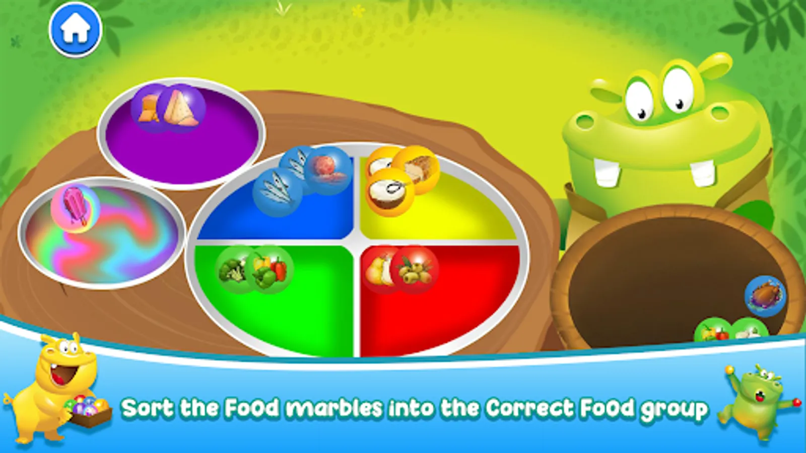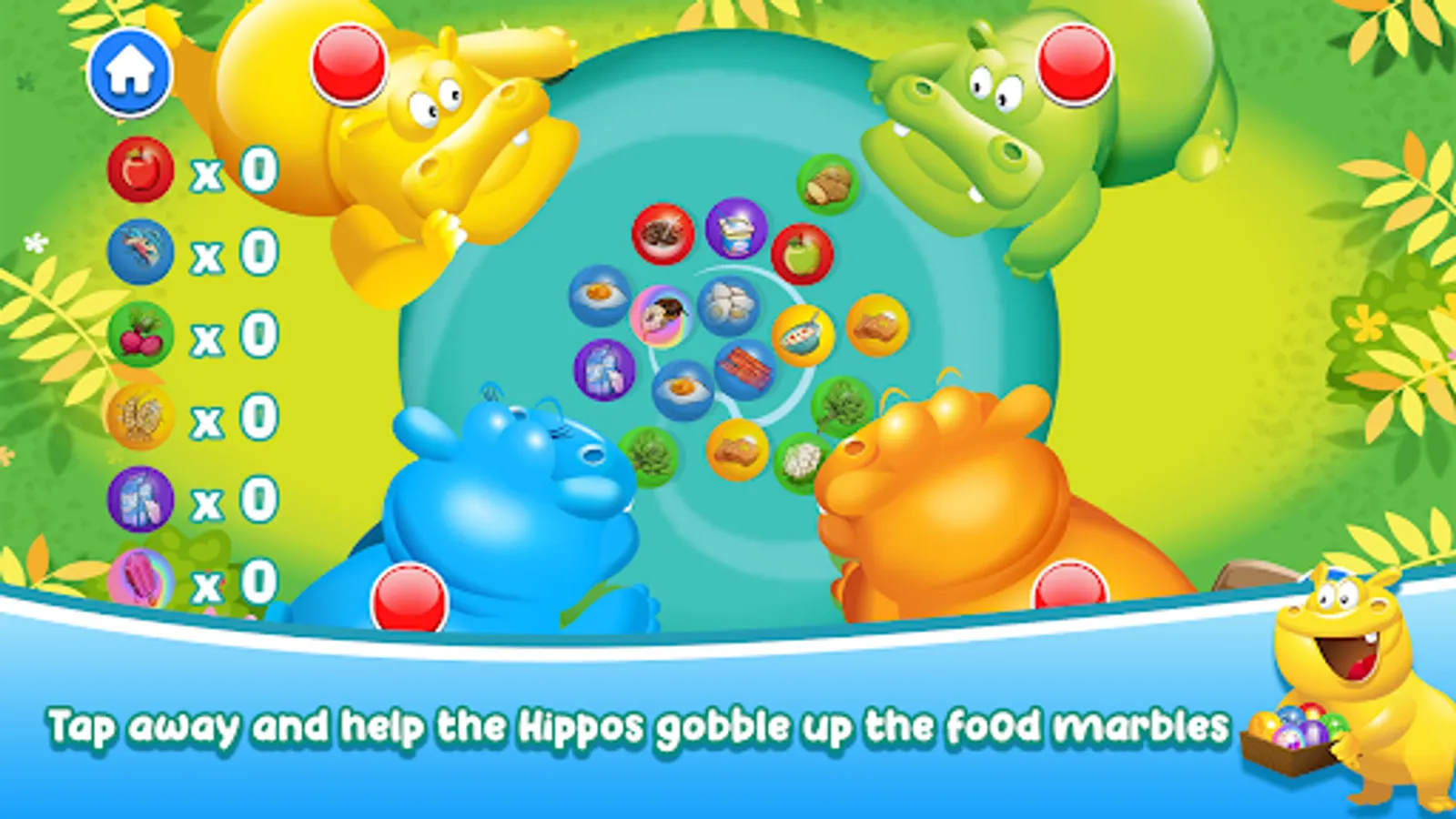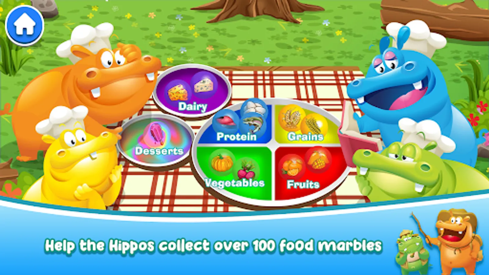 Are you ready to join in the feeding frenzy? Join the Hippos to collect food marbles, discover new foods, learn what foods are good for you and create balanced meals. With your help, the hippos will be chomping away. But hurry! You will have to move fast or the marbles may roll back into the watering hole.