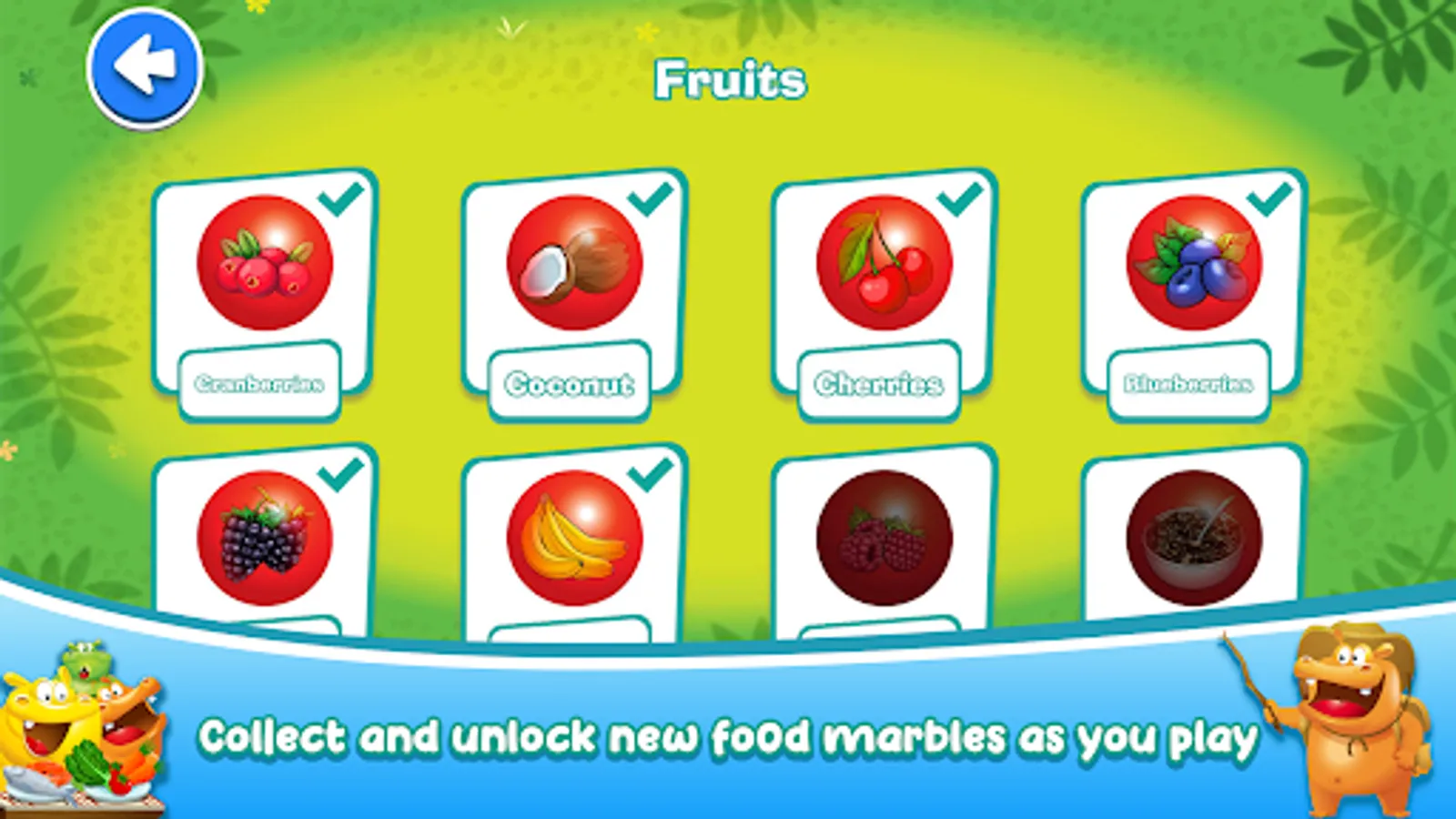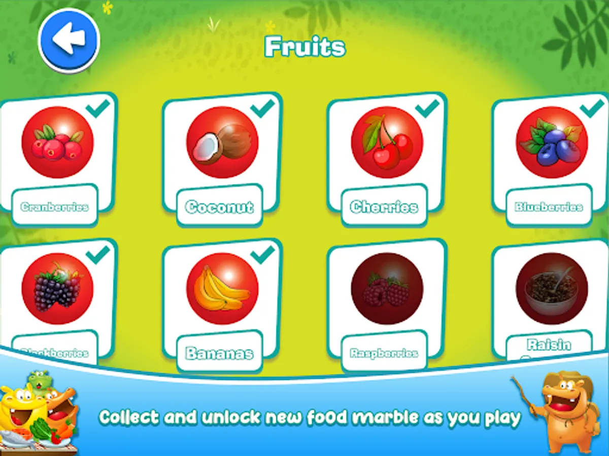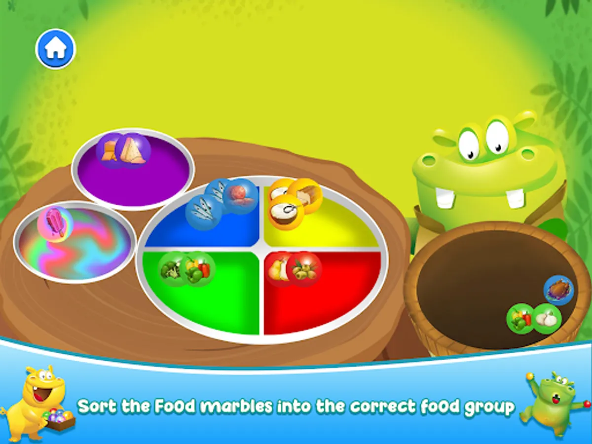 ->Challenge mode! 4 activities to test your knowledge of the food categories and help make the Hippos a balanced meal.