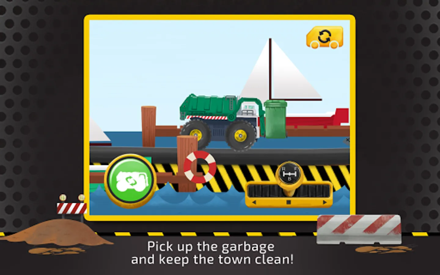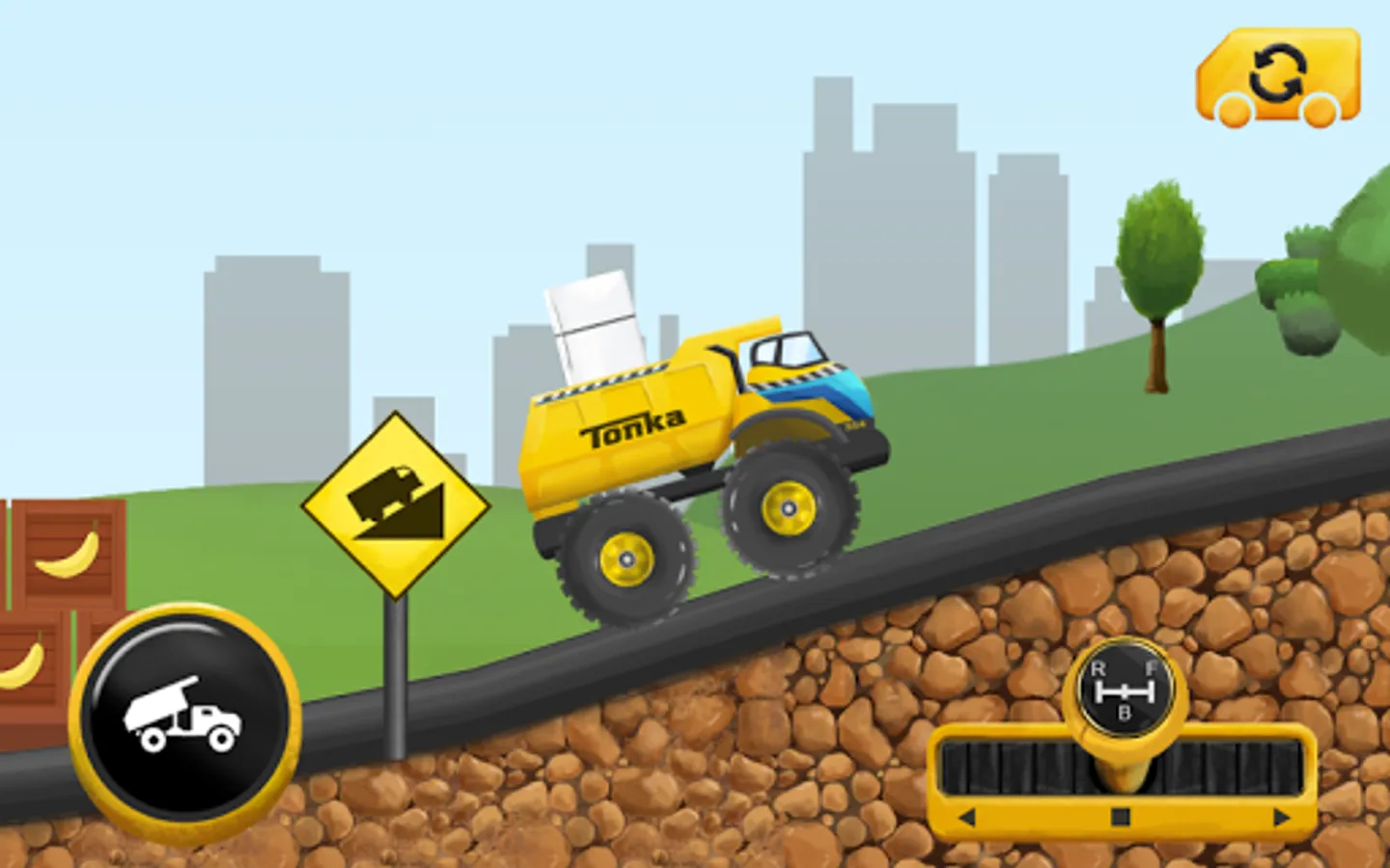 Presented in side-view, players can control the vehicles in beautifully illustrated environments. While the simple, intuitive controls are designed for kids, the realistic driving effects convey the visceral thrill of driving a big rig! Just don’t go too fast if you want to keep your rig on the road, and “go easy on those hills!”