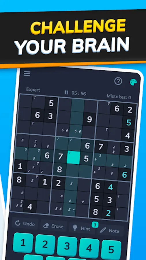 This Sudoku has number-themed confetti, multi-colorful schemes, and an auto-correct option that never let you lose. The user-friendly interface in this Soduko promotes focus and tranquility while providing unique amounts of brain training in every puzzle.