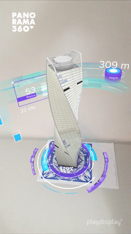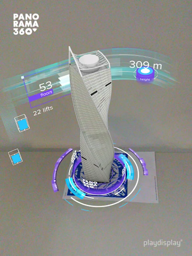 The app is kid and elderly friendly. It is adapted for three languages: Russian, English and Chinese, so international guests can use it as well as local guests. You just point the camera of your mobile device at a special image (AR marker), located on the podium at the observation deck PANORAMA360, and a digital 3D animated tower with a beautiful infographic shows up in front of you in augmented reality. Options to rotate the AR object and the use of built-in camera make the process even more exciting.