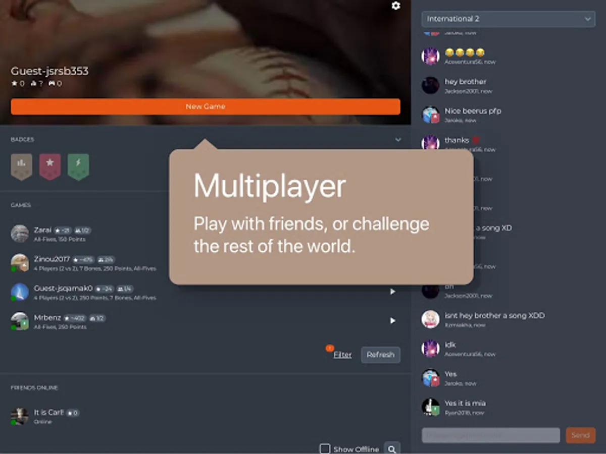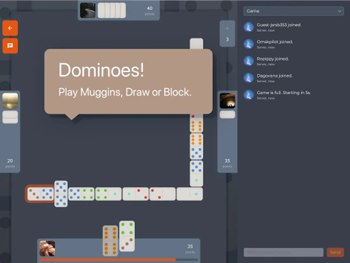 - Multiplayer: play Dominoes online with up to 3 friends.