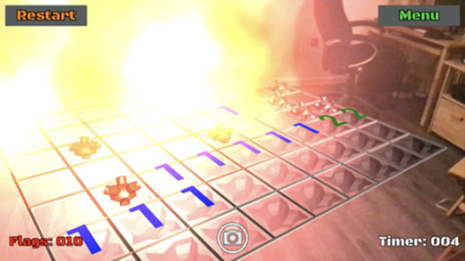 A mine sweeping game using your device's camera to make a play area on any flat surface. Tap on the tiles to clear the floor and drag the flag to mark mines. View your highscores and select custom difficulties. Clear the area as fast as you can to get a high score! Requires Android 7.0 or newer and ARCore.