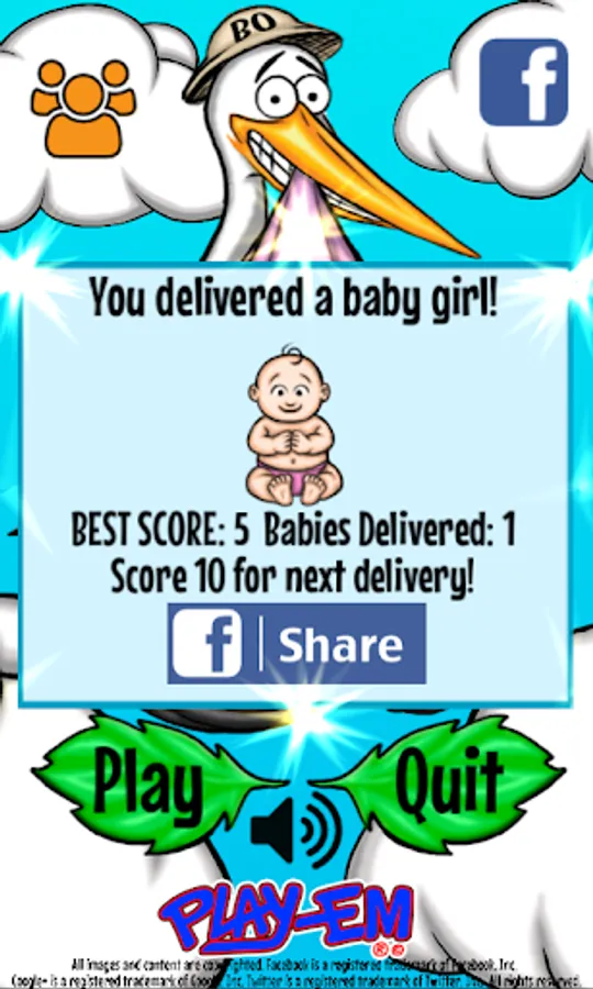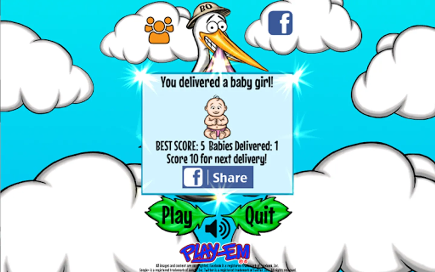 Guide Bo the Stork over 3 types of terrain and through 4 types of weather to help him deliver babies. Tap the screen to keep Bo up in the air and avoid the obstacles!