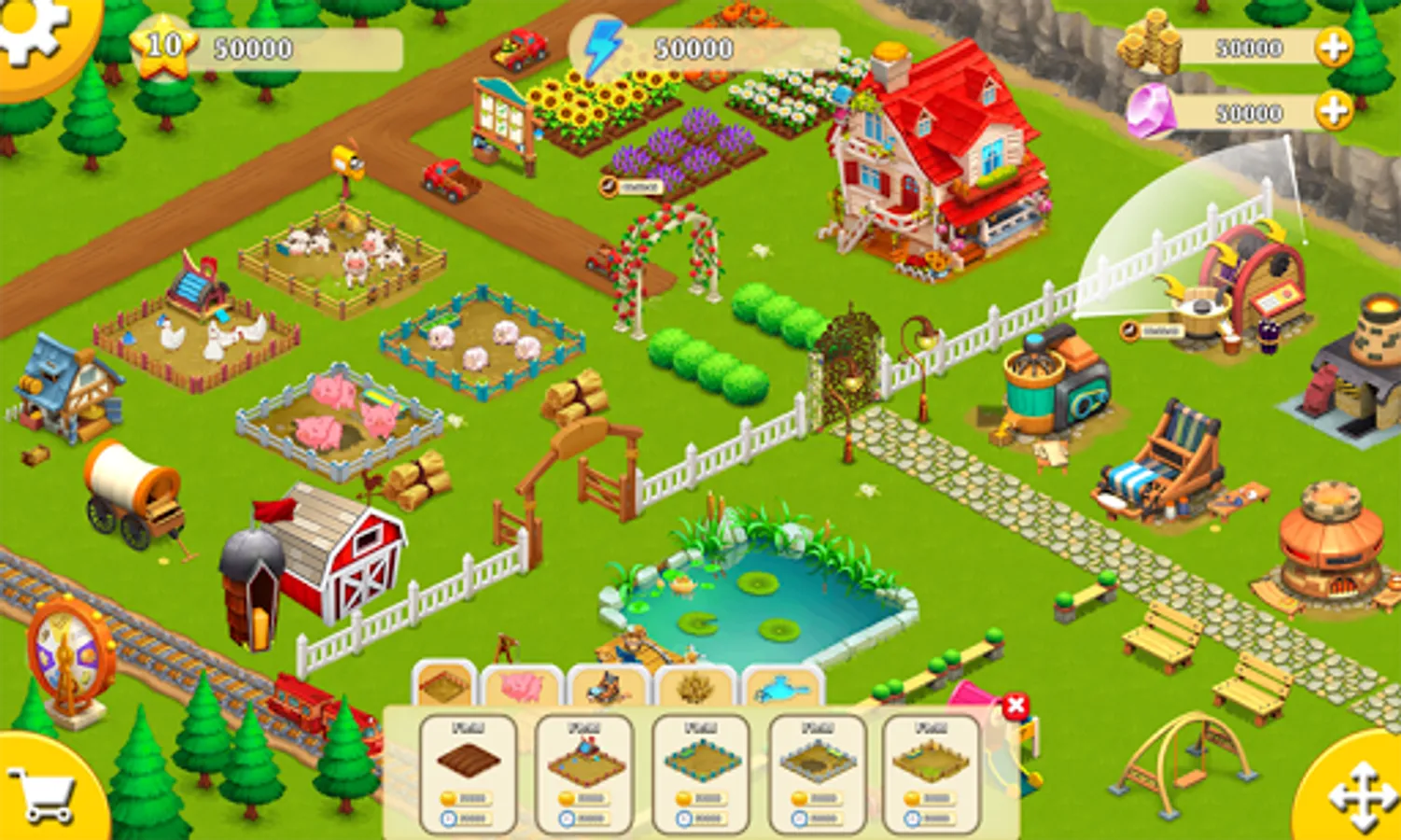 Apparel accessories for the players to buy livestock feed production plant itself in shops and stalls machinery selected then choose the food factory at the beginning of the booth. When finished buying the machine will display the main screen players select that machine placement success will be deducted from the amount. Then just feed into the machine and select the type of food being produced to feed chickens, cows ... wait a certain period of time there will be harvested product and bring food for livestock.