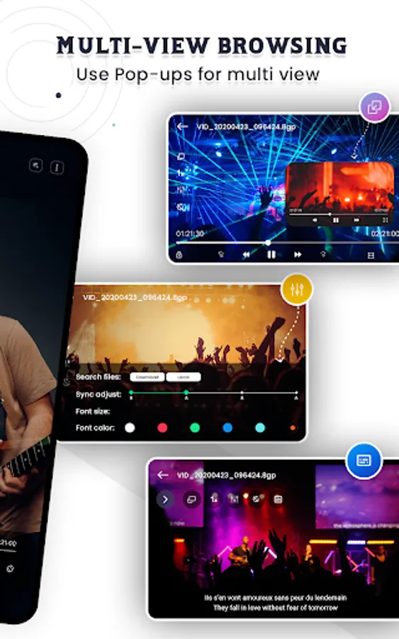 🔤 Subtitle Support: Enjoy videos from different languages or with hard-to-understand accents with Video Player's comprehensive subtitle support. It enables you to easily load and synchronize subtitle files, adjust font size, style, and color, and even search for subtitles online.
