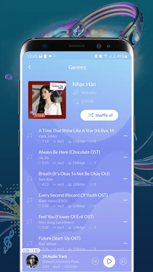Itβs not only a MP3 player. Music Player supports all music and media formats including MP3, MIDI, WAV, FLAC, AAC, APE, etc. And you can play them in high quality.