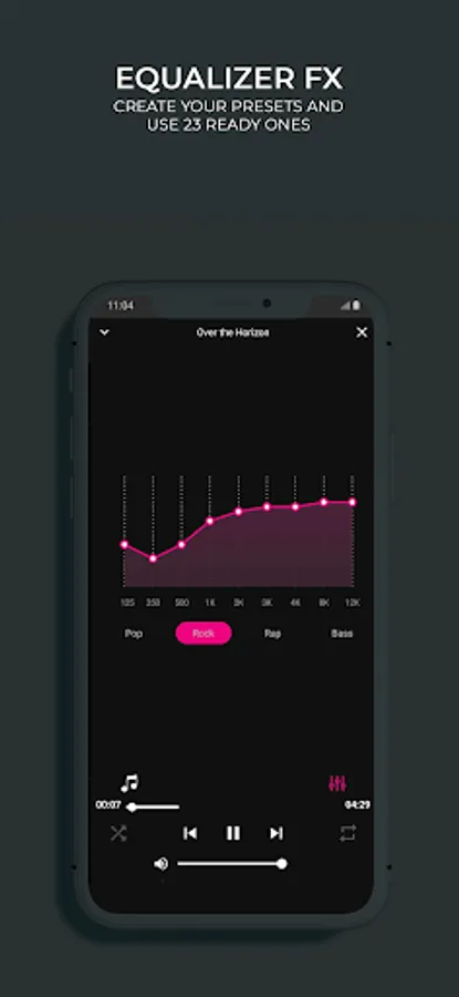 BOOST THE BASS: powerful sound amplification and equalizer with different settings.
