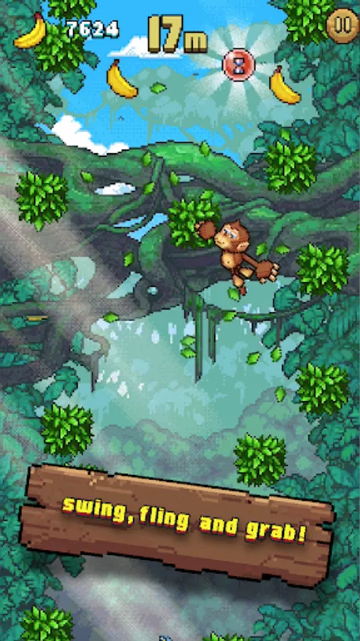No cage can hold this free swingin’ monkey. In a race to prove who’s king of the jungle, this little monkey plans to go up, up and all the way up! Swing from bush to bush and quickly climb up as high as you can. Skillfully use boosts to power up your climbing strategy. Collect bananas and use them to acquire boosts and cool costumes to show off your unique and flashy outer monkey style! Swing past your Game Center friends leaving their best climbs in the dust. We hope to see you at the top!