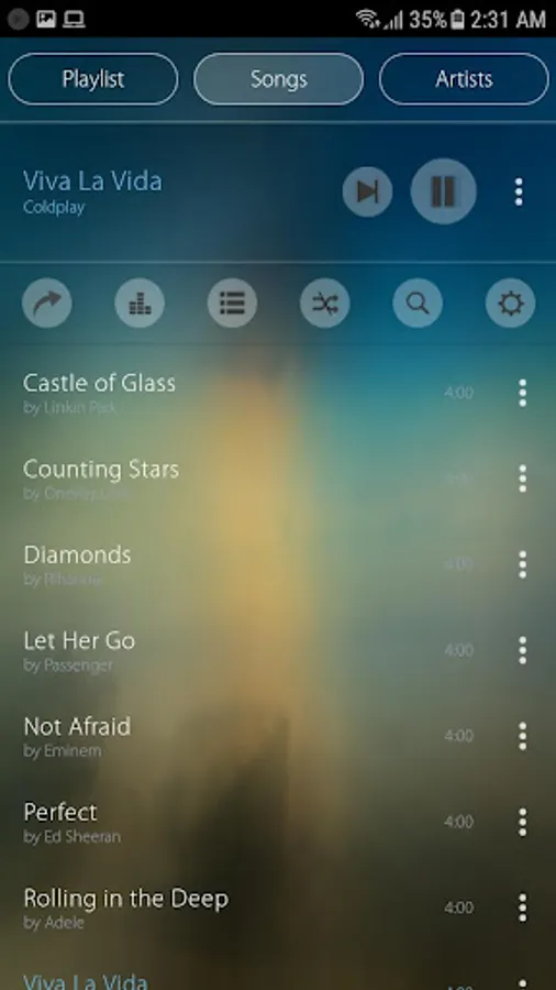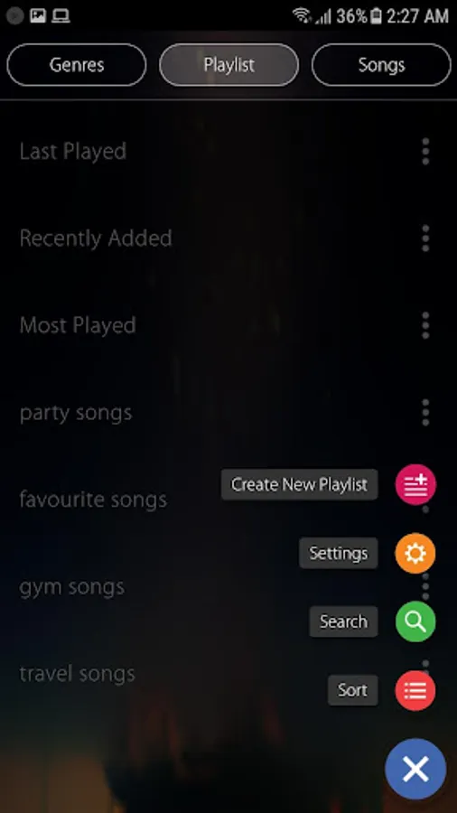2. Browse songs in 6 different ways (Playlist, Genre, folder, Artist, Album and songs).