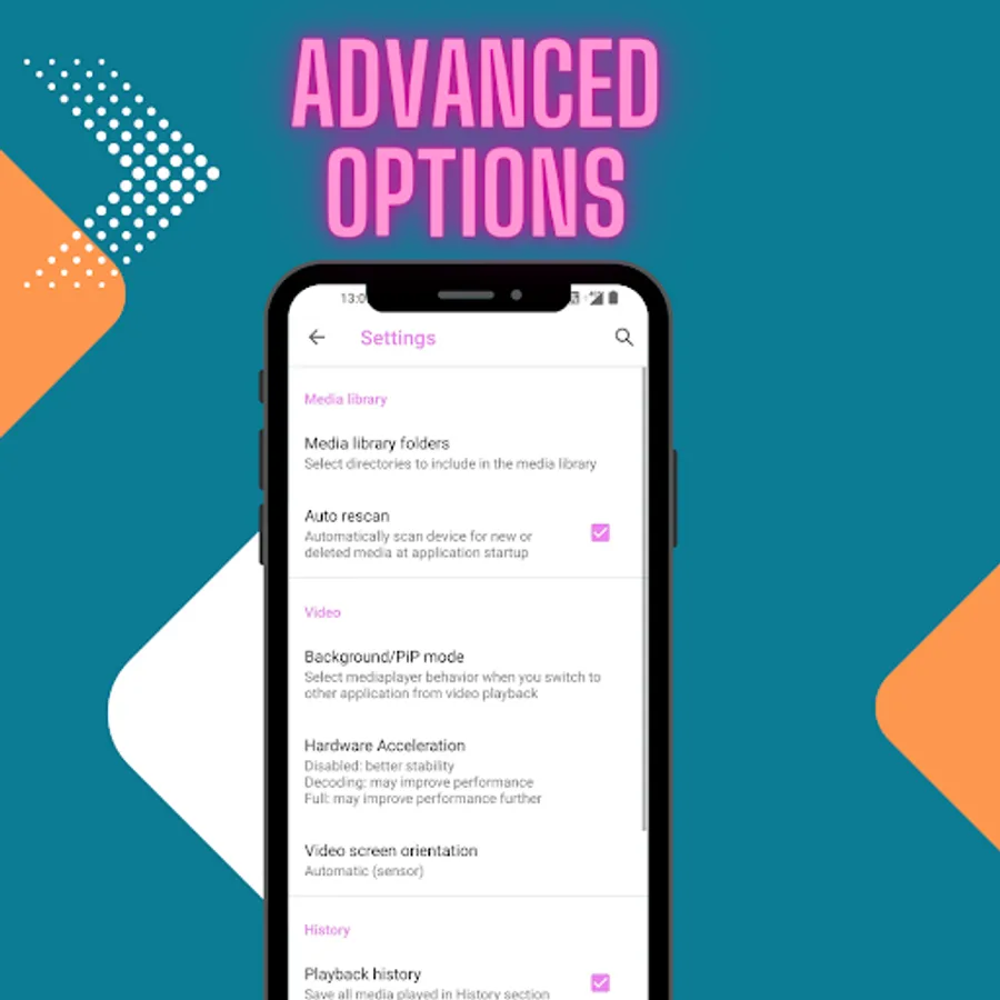 media player has support for multi-track audio and subtitles. It supports auto-rotation, aspect-ratio adjustments and gestures to control volume, brightness and seeking.
