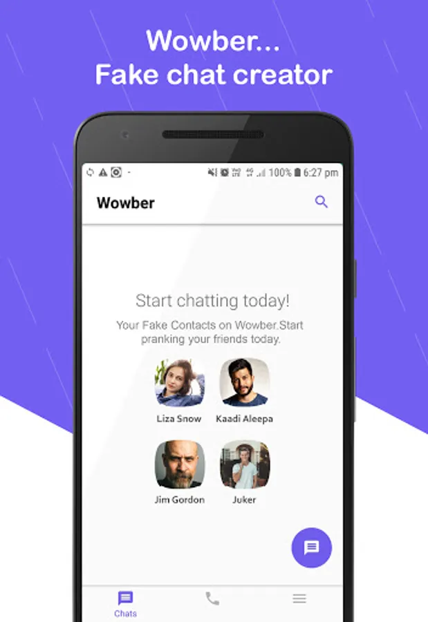 Wowber Fake Chat lets you create realistic mocks of chat conversations and share it with your friends. Create Prank contacts and conversations and have fun with your friends and family.