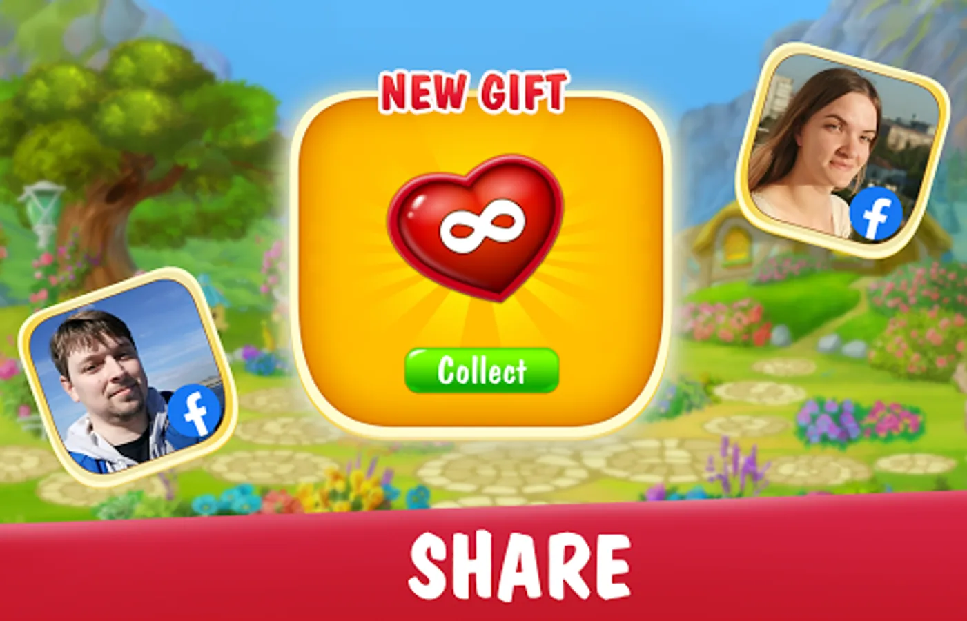Play a new matching game offline or share your magic story and a beautiful manor garden with lovable friends online!