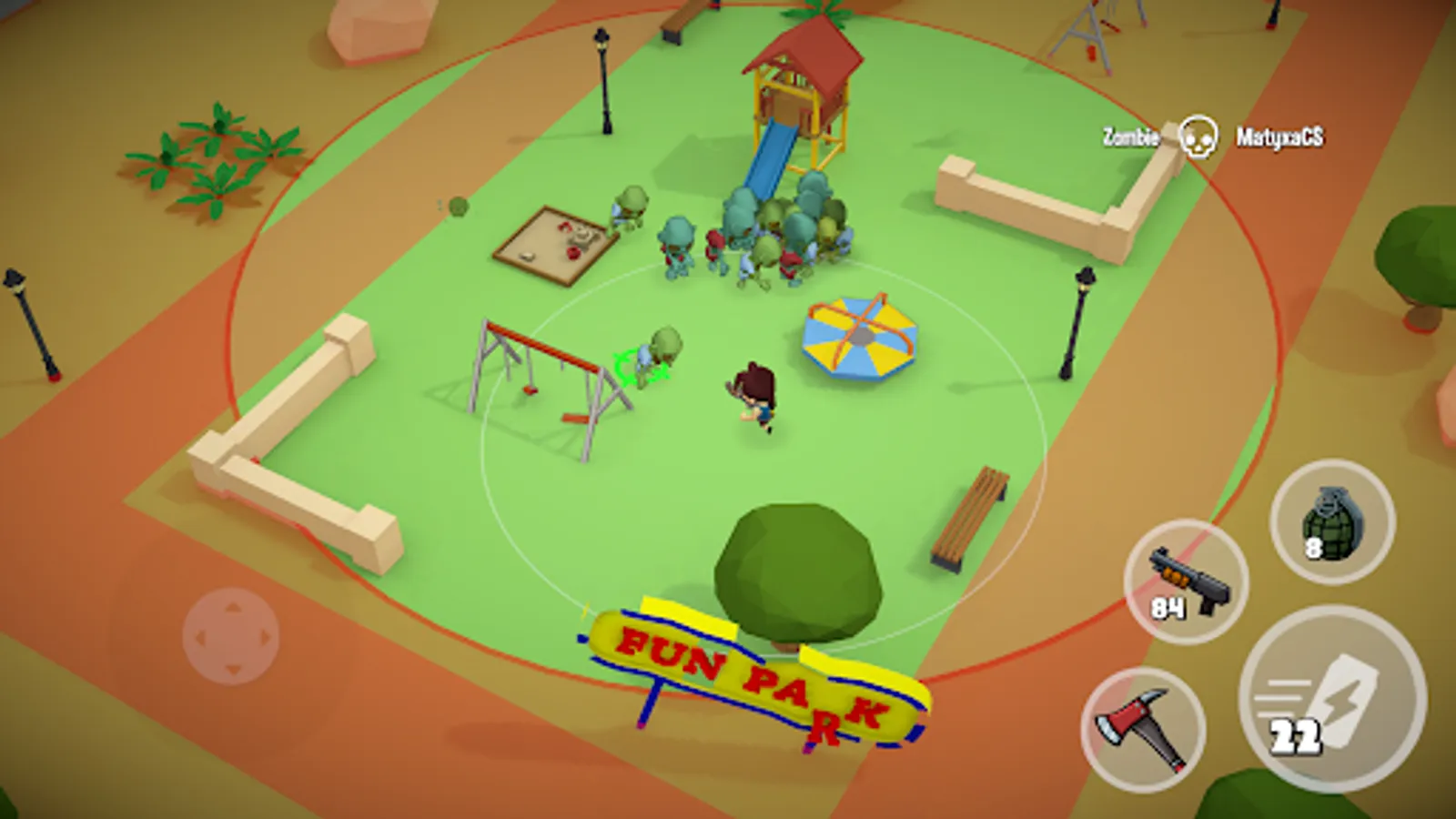 Battlelands Zombie Royale is a simple battle royale io game with casual mechanics in the cartoon zombie apocalypse world.